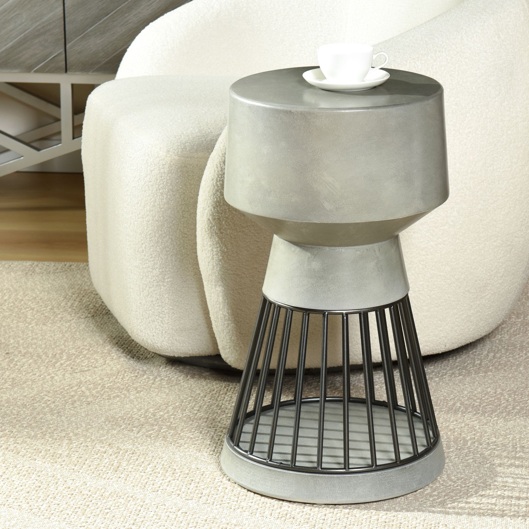 C-Shaped Side End Table, Rustic Texture, Slate Concrete and Black Metal