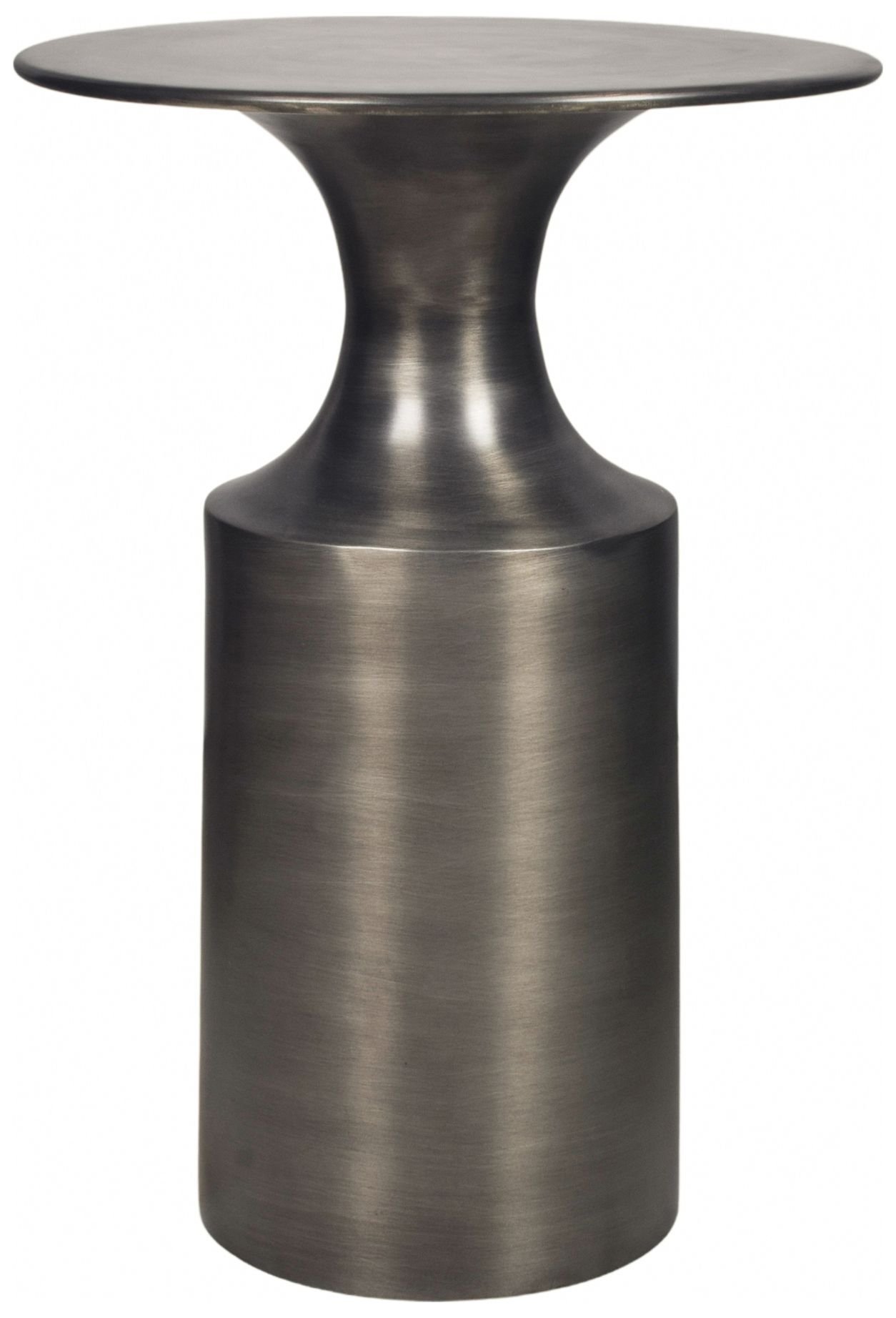 Round Accent Table, Distressed Bronze Aluminum and Clear Glass