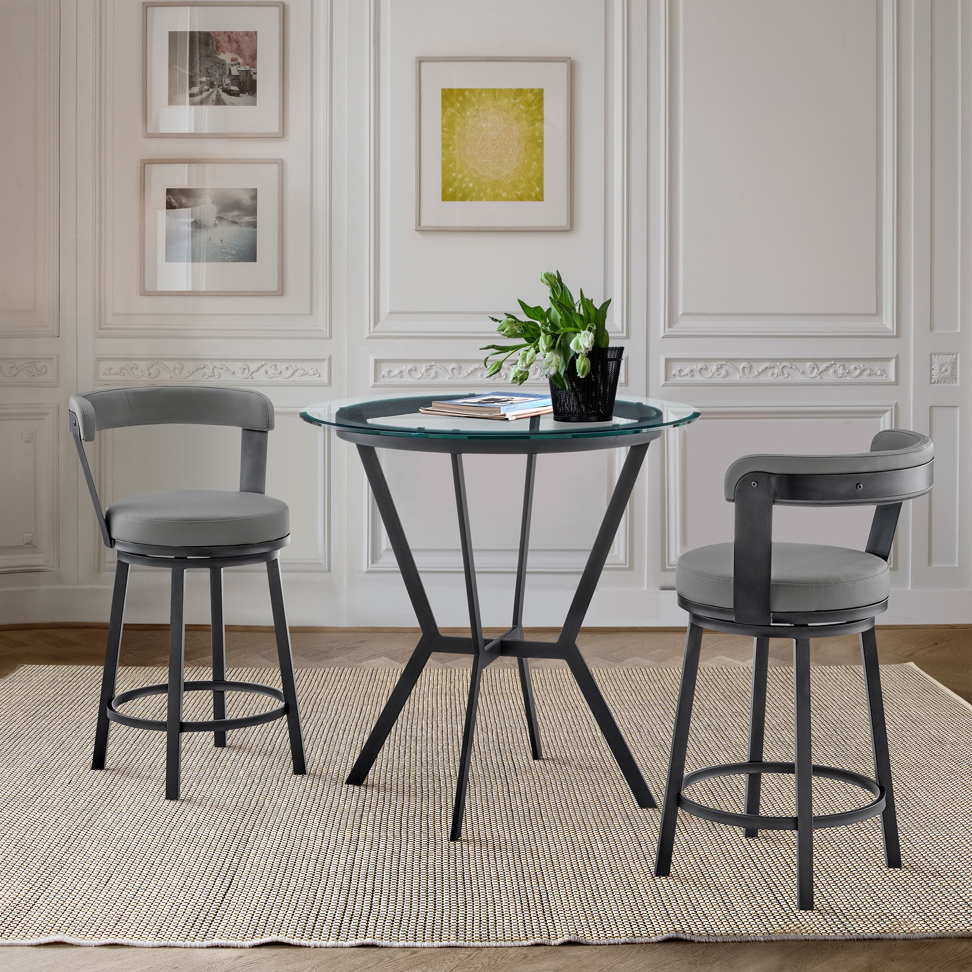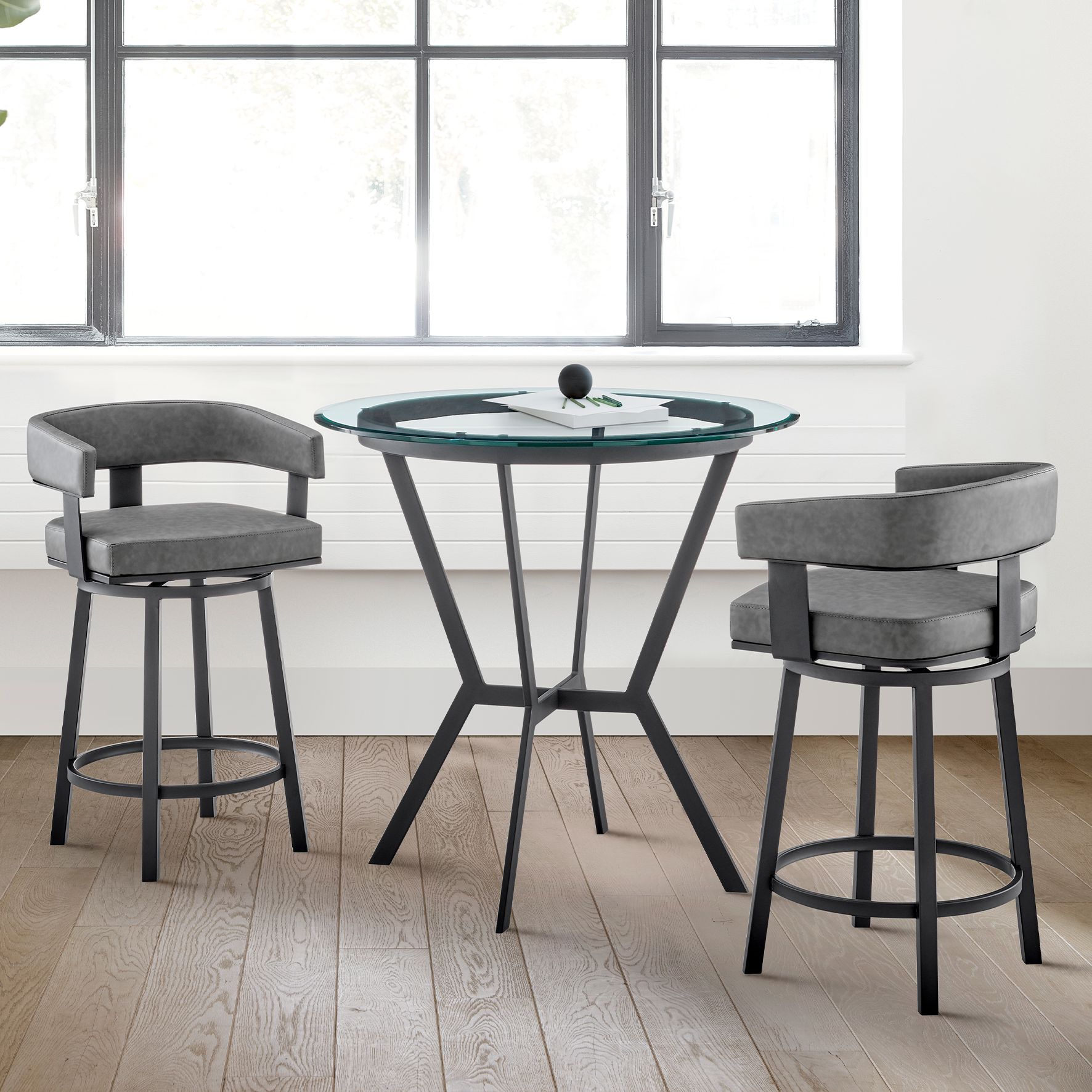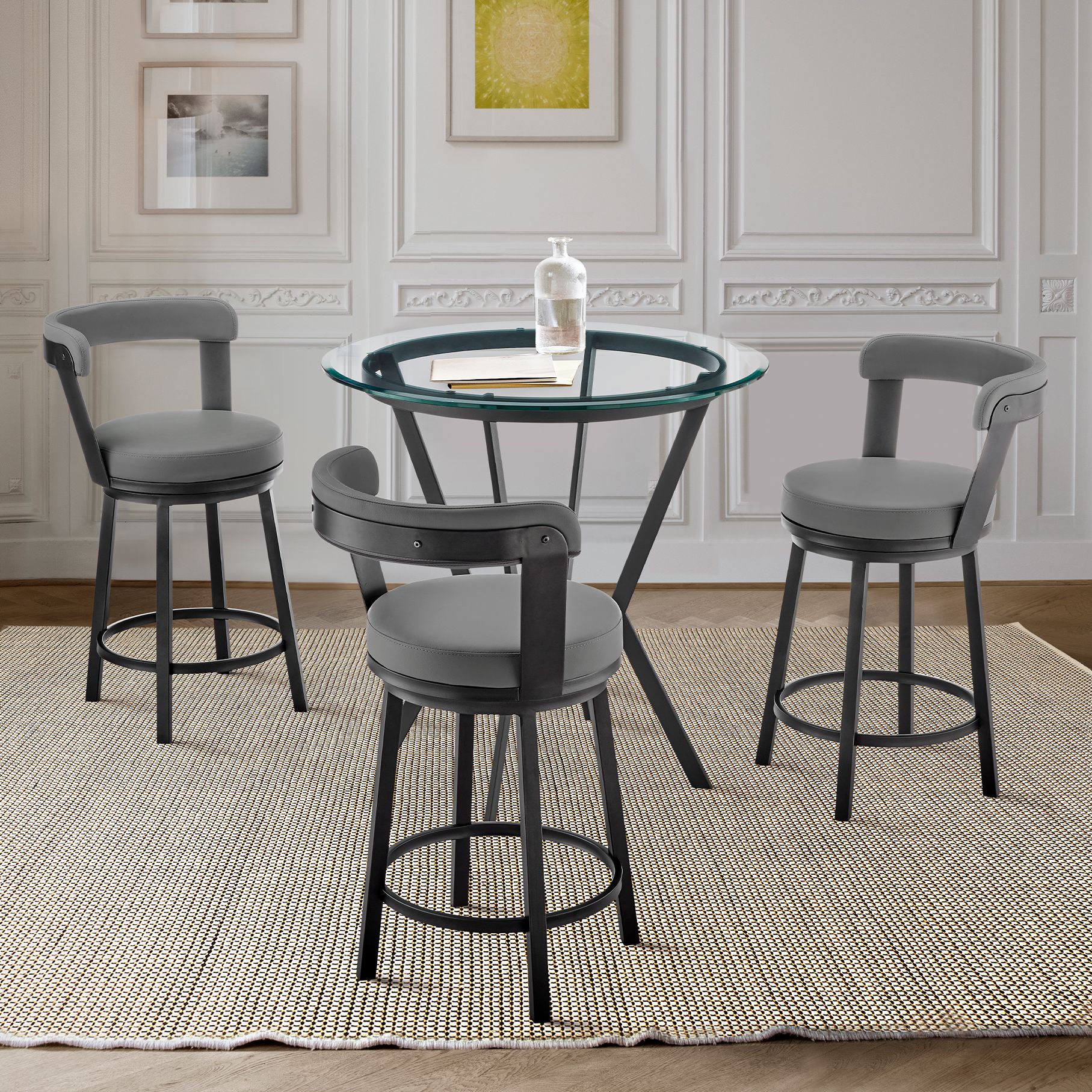 Naomi and Bryant 3 Pc Counter Height Dining Set in Black Metal and Glass