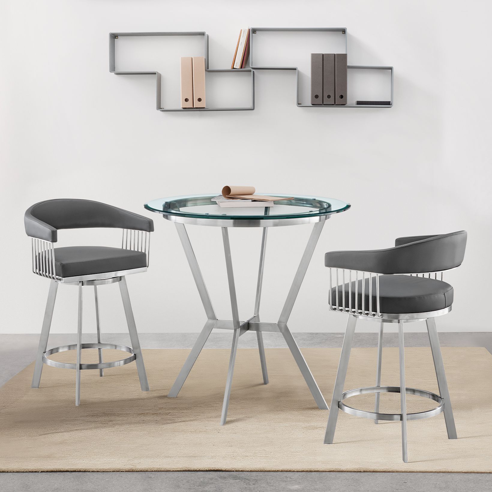 Naomi and Lorin 3 Pc Counter Height Dining Set in Brushed Stainless Steel
