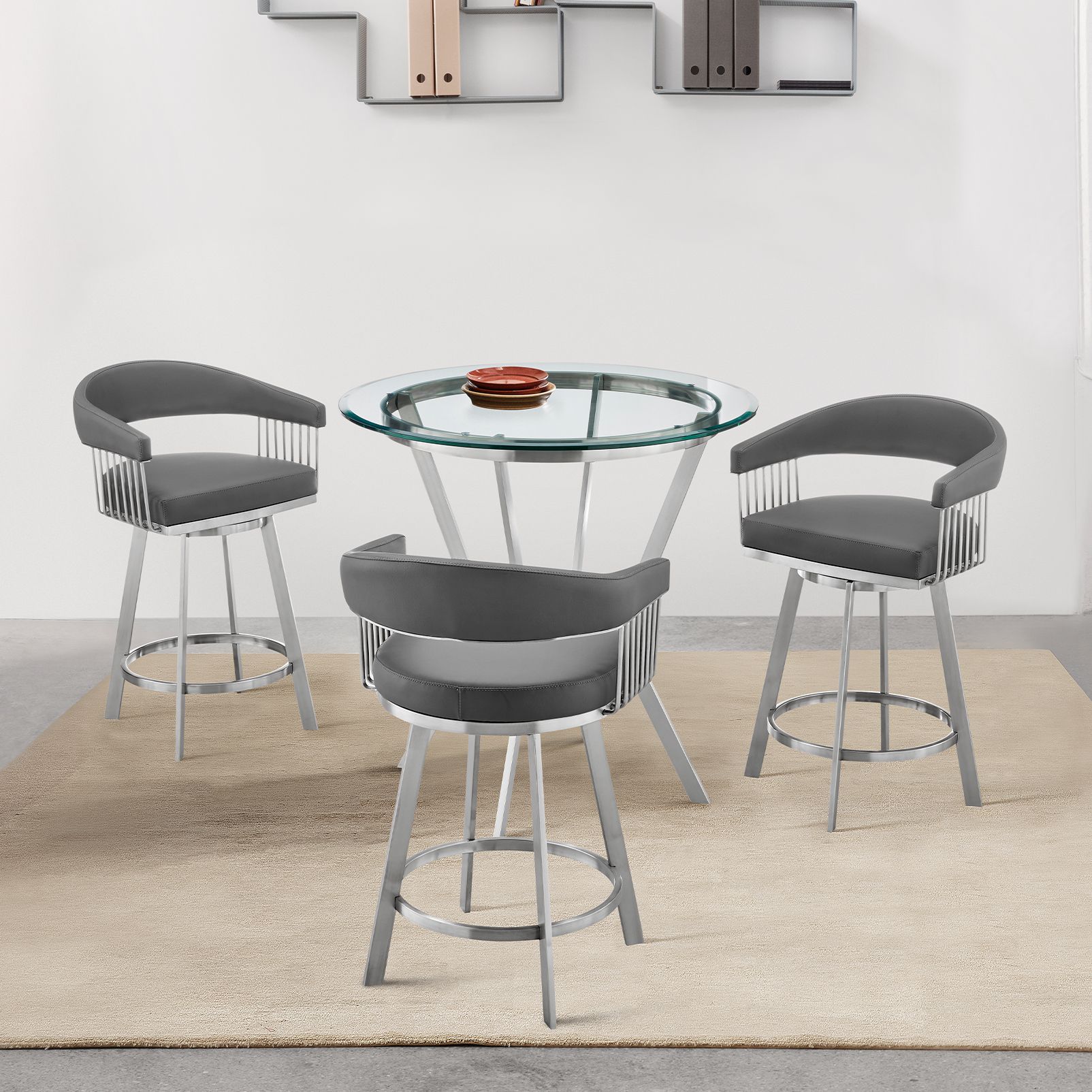 Naomi and Chelsea 3 Pc Counter Height Dining Set in Brushed Stainless Steel