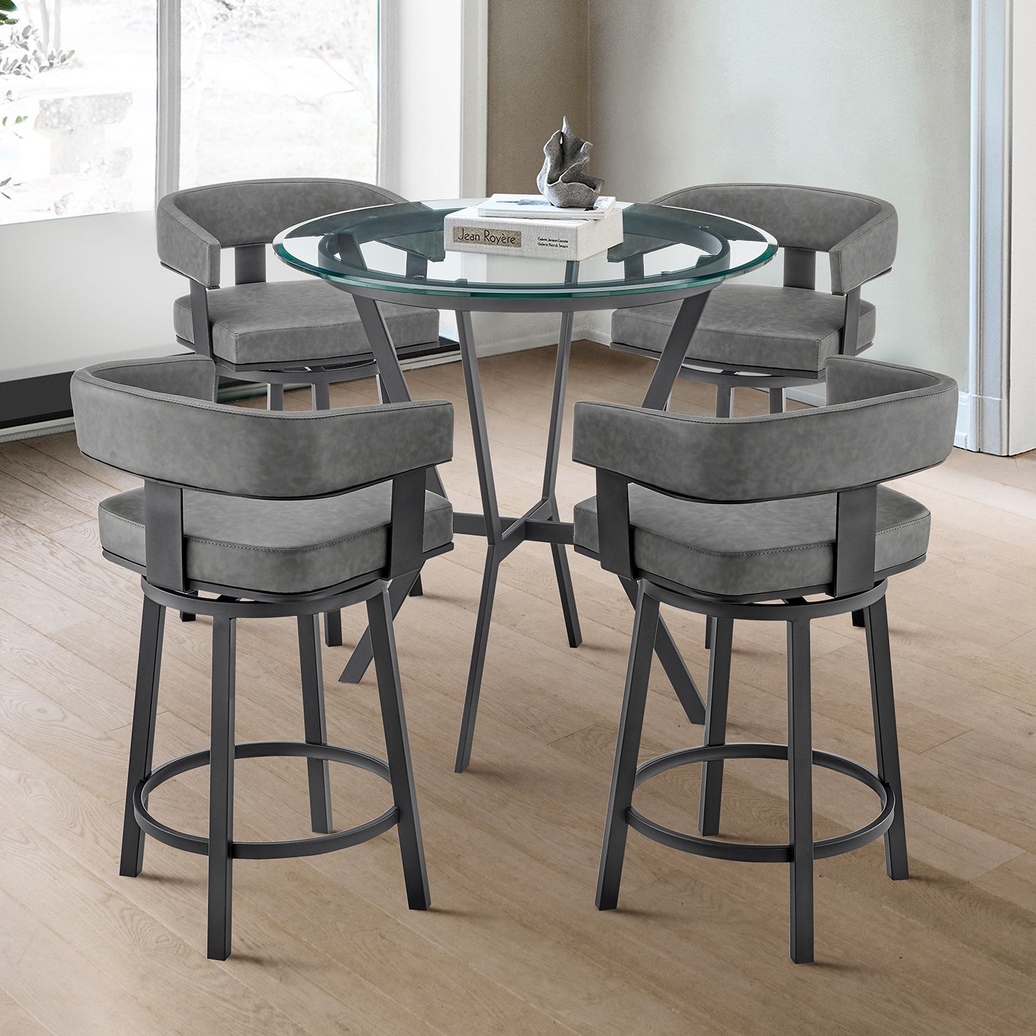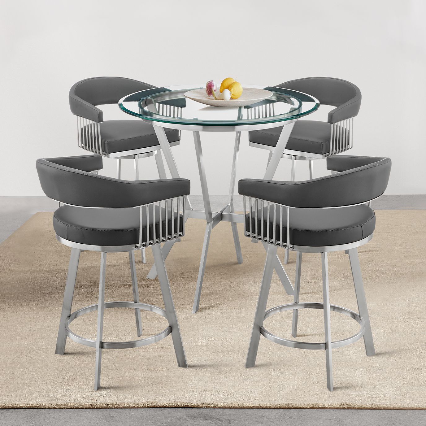 Naomi and Lorin 5 Pc Counter Height Dining Set in Brushed Stainless Steel
