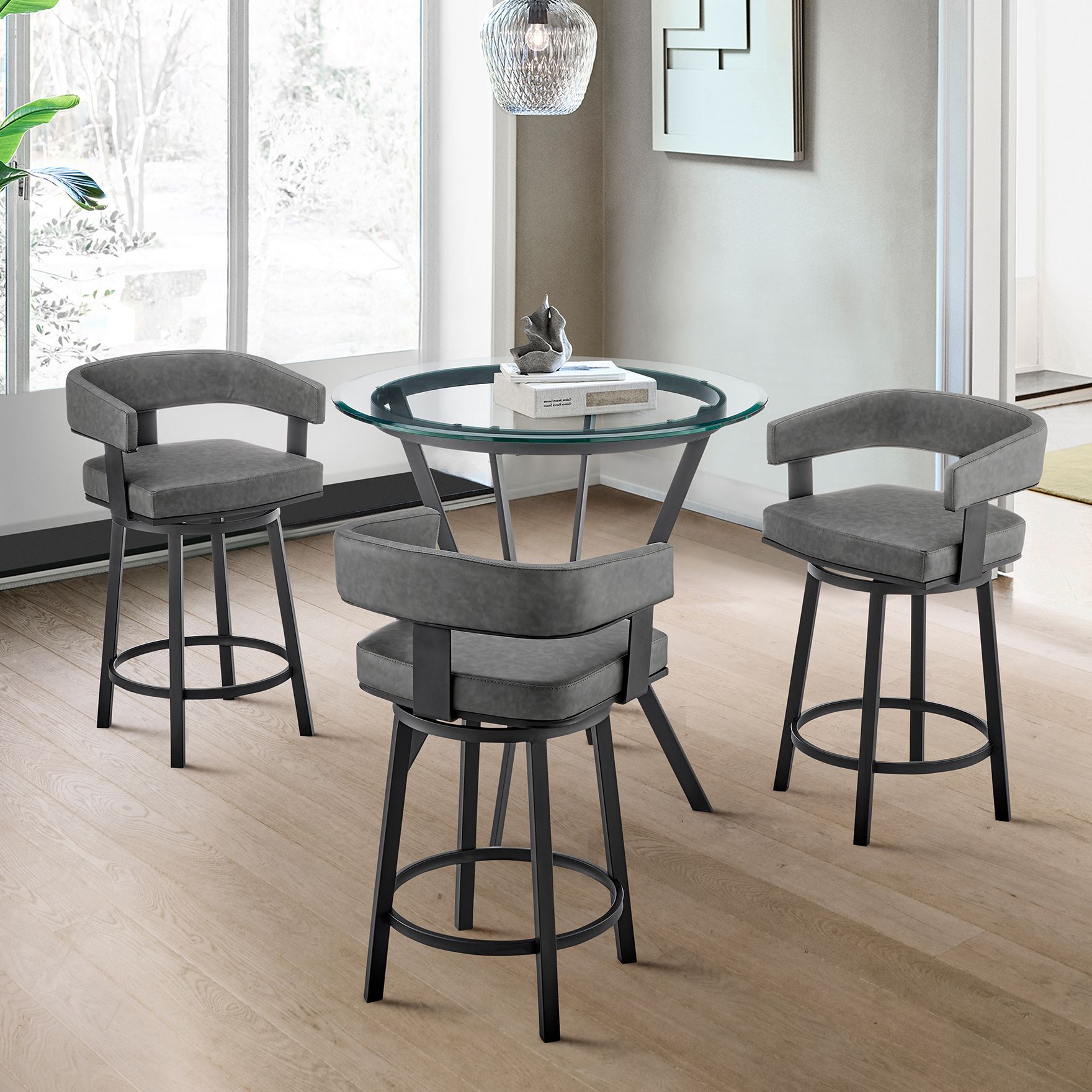 Naomi and Bryant 4 Pc Counter Height Dining Set in Black Metal and Glass