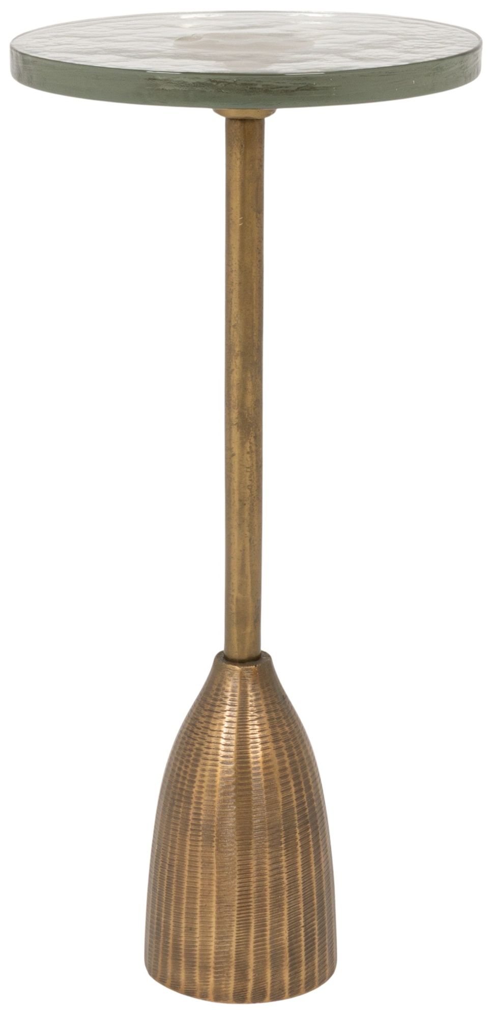 Round Accent Table, Distressed Bronze Aluminum and Clear Glass