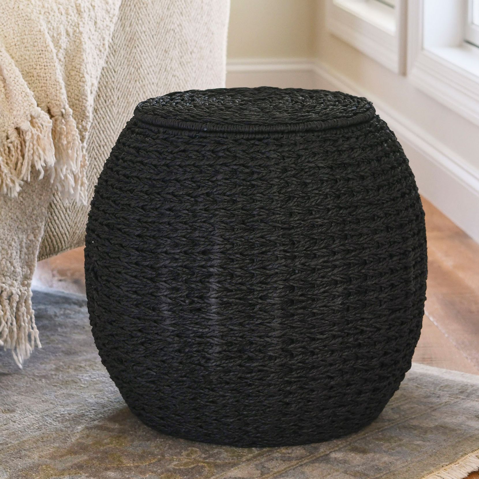Handwoven Paper Rope Barrel Wicker Storage Basket Side Table, Black