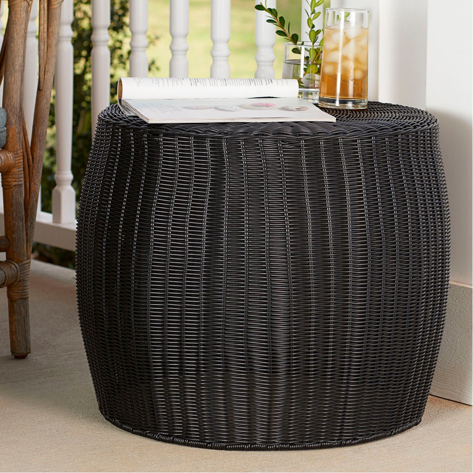 Handwoven Resin Barrel Side Table Storage Container, Black