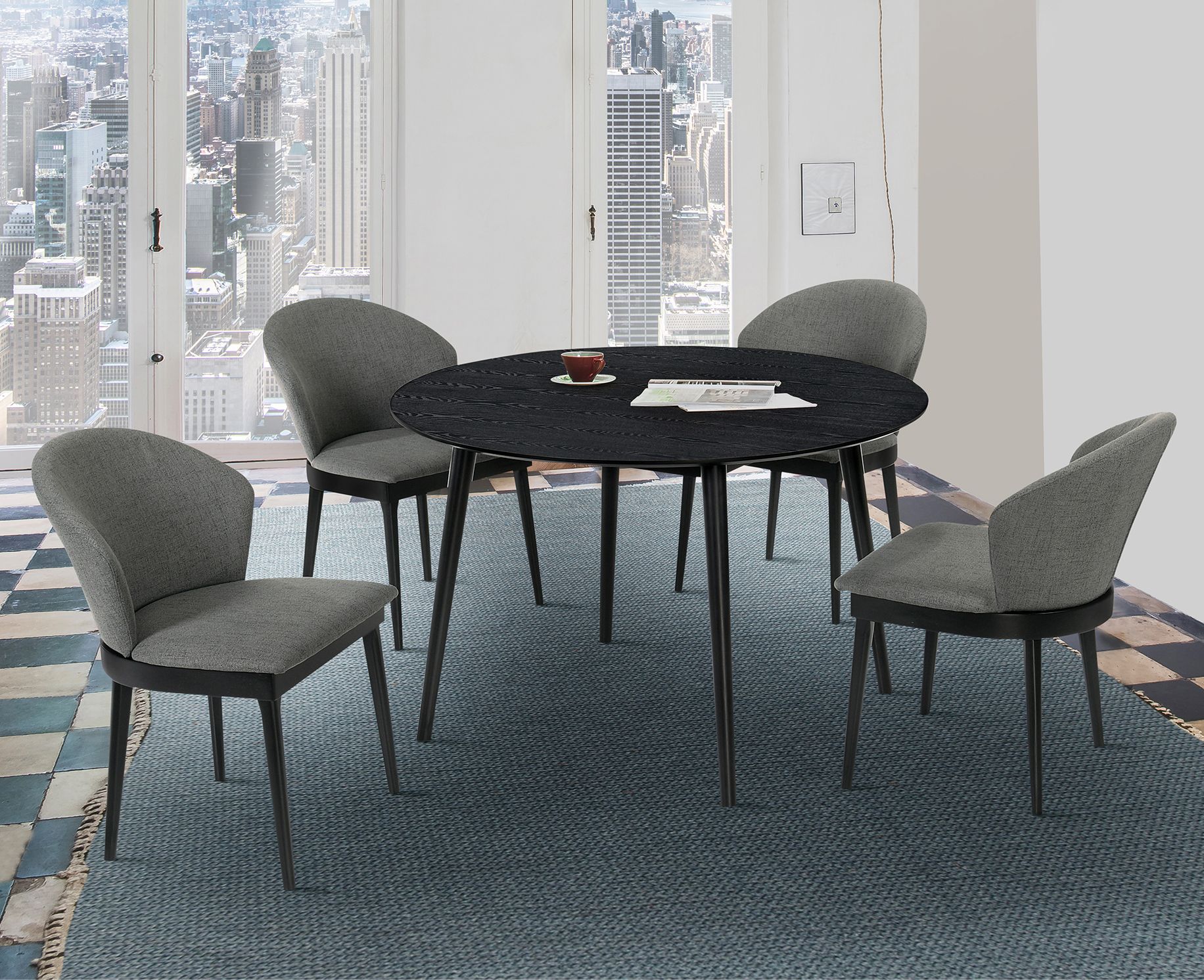 Arcadia and Juno 5 Piece 42 In. Round Dining Set in Charcoal, Black Wood