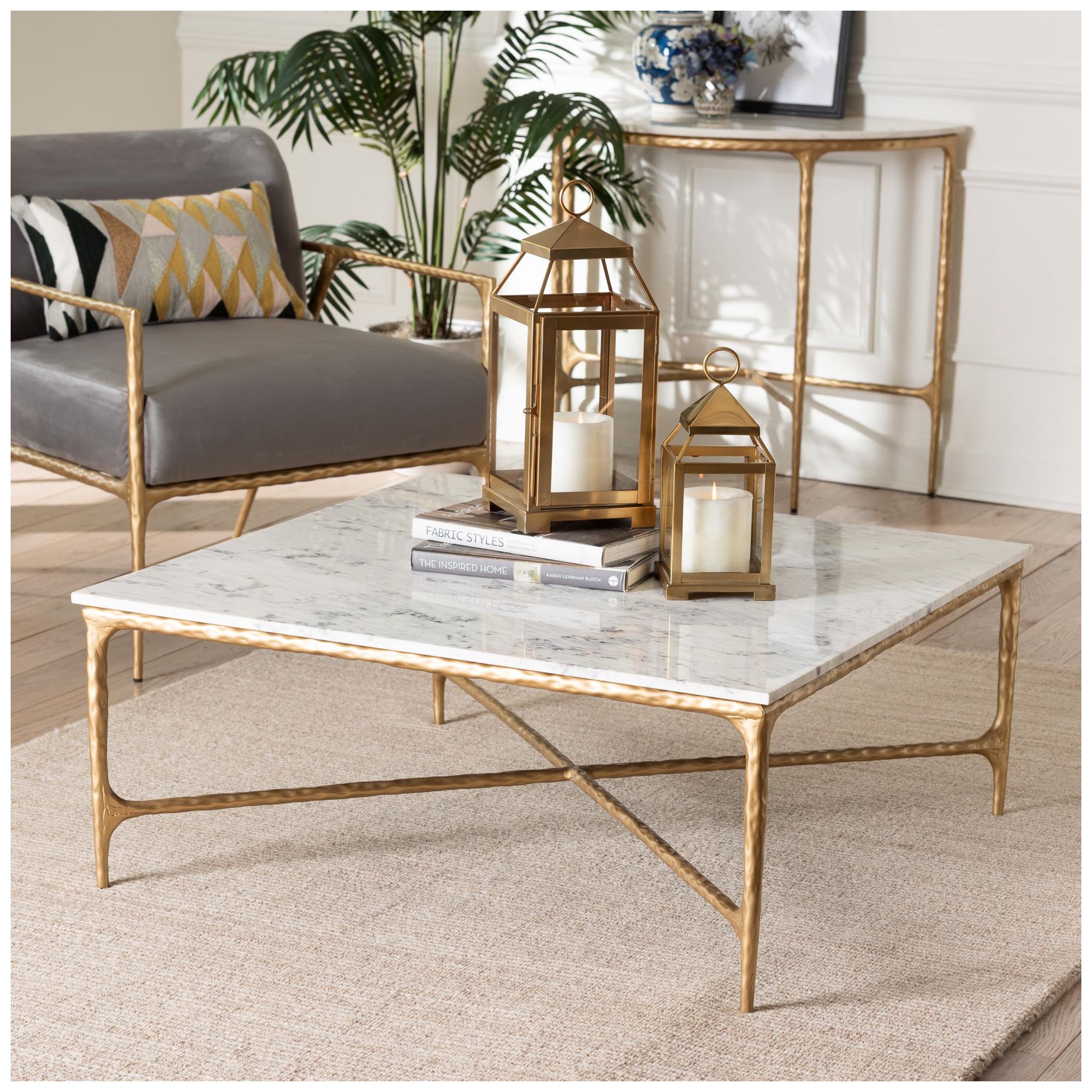 Gold Metal Contemporary Accent Table, 16" x 16" x 20"
