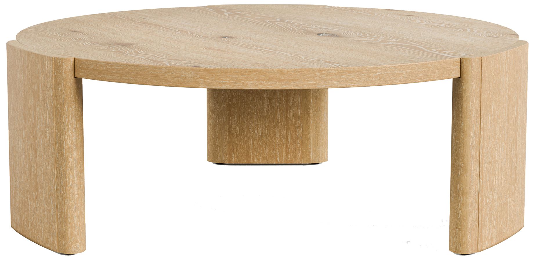 Lacy 42" Oak Round Coffee Table with Plinth Base