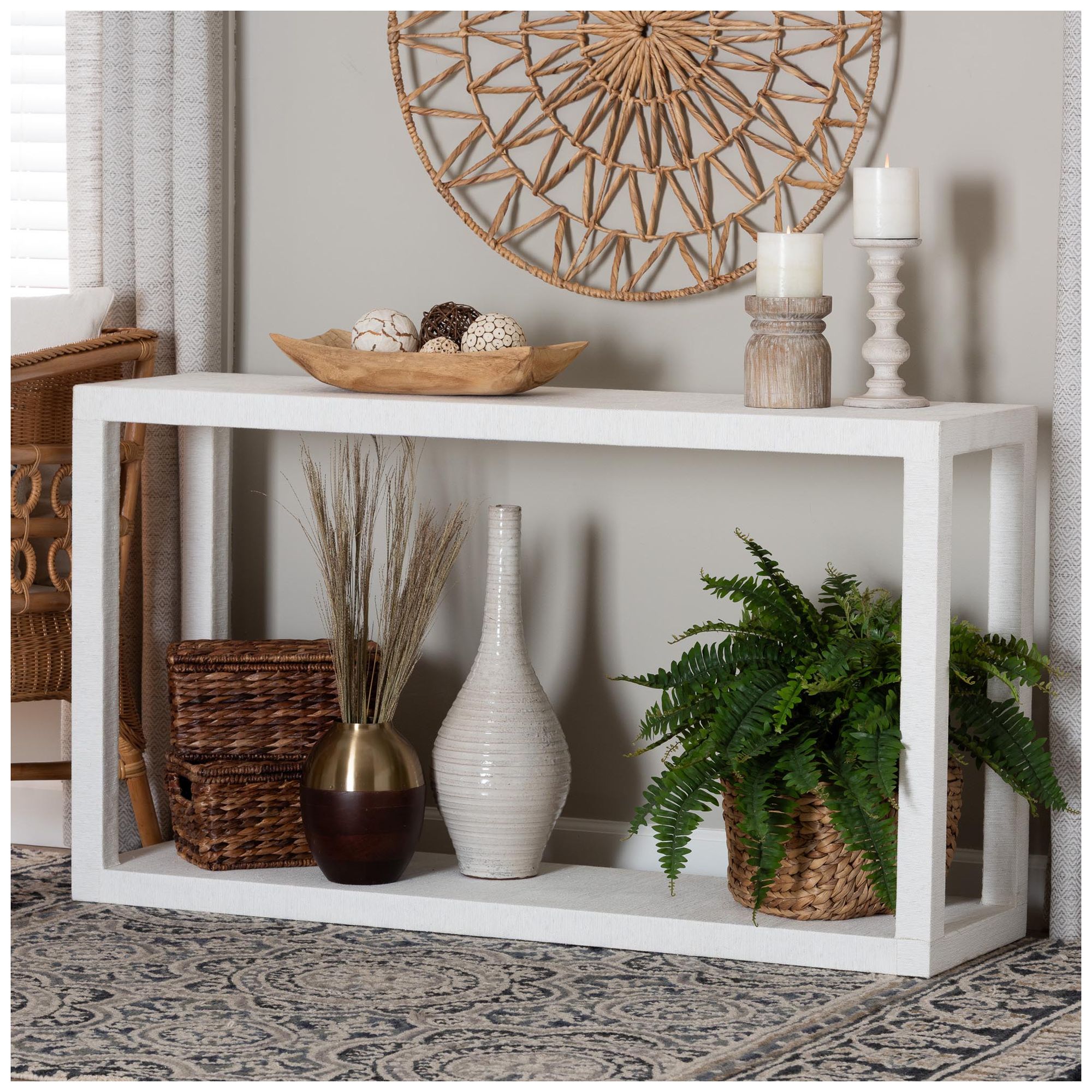 bali & pari Oaklynn Natural Grasscloth Console Table -Entryway Table, White