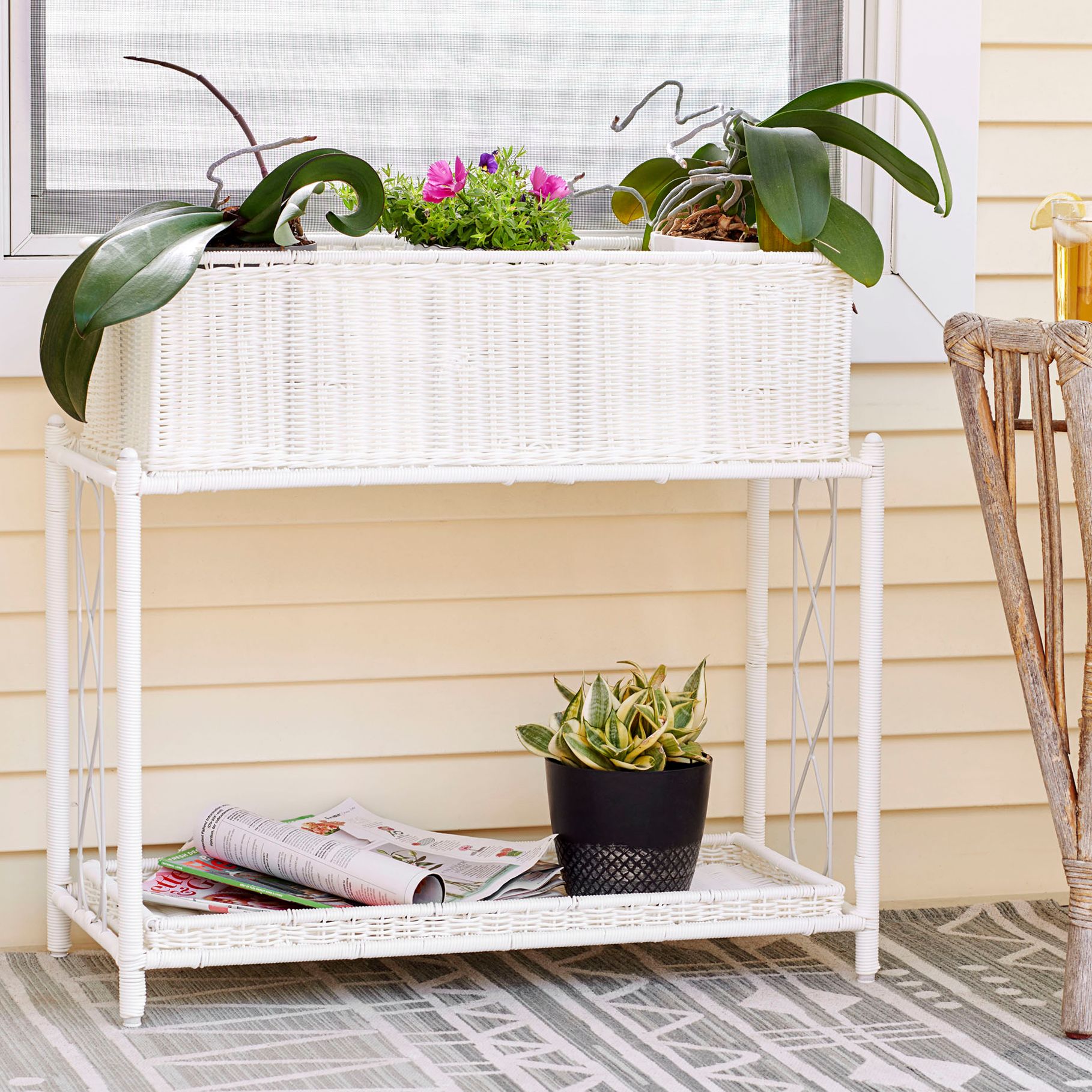 Raised Two Tier Plant Stand with Two Interchangeable Shelves, White