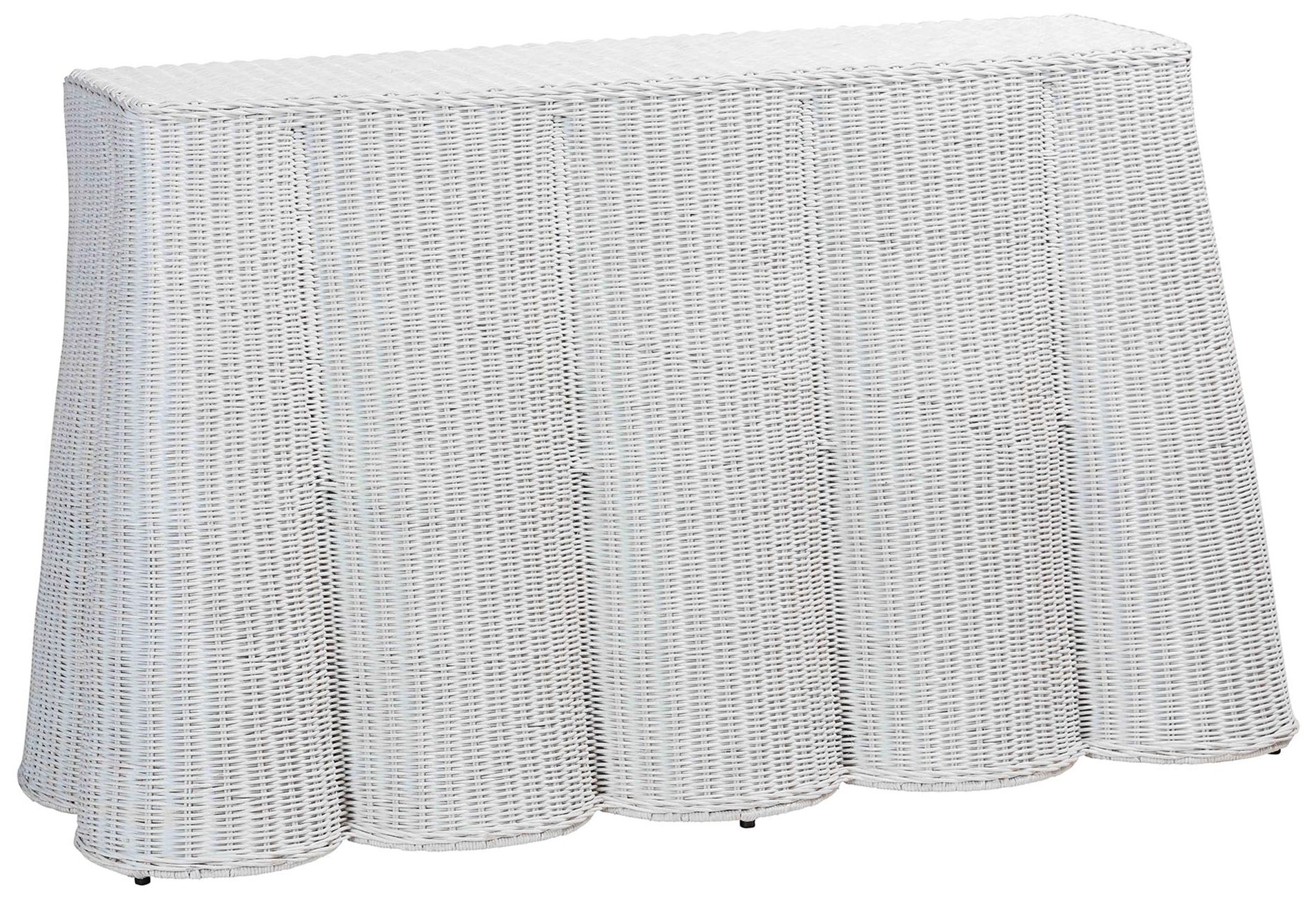 bali & pari Palm Bohemian White Scallop Rattan Console Table