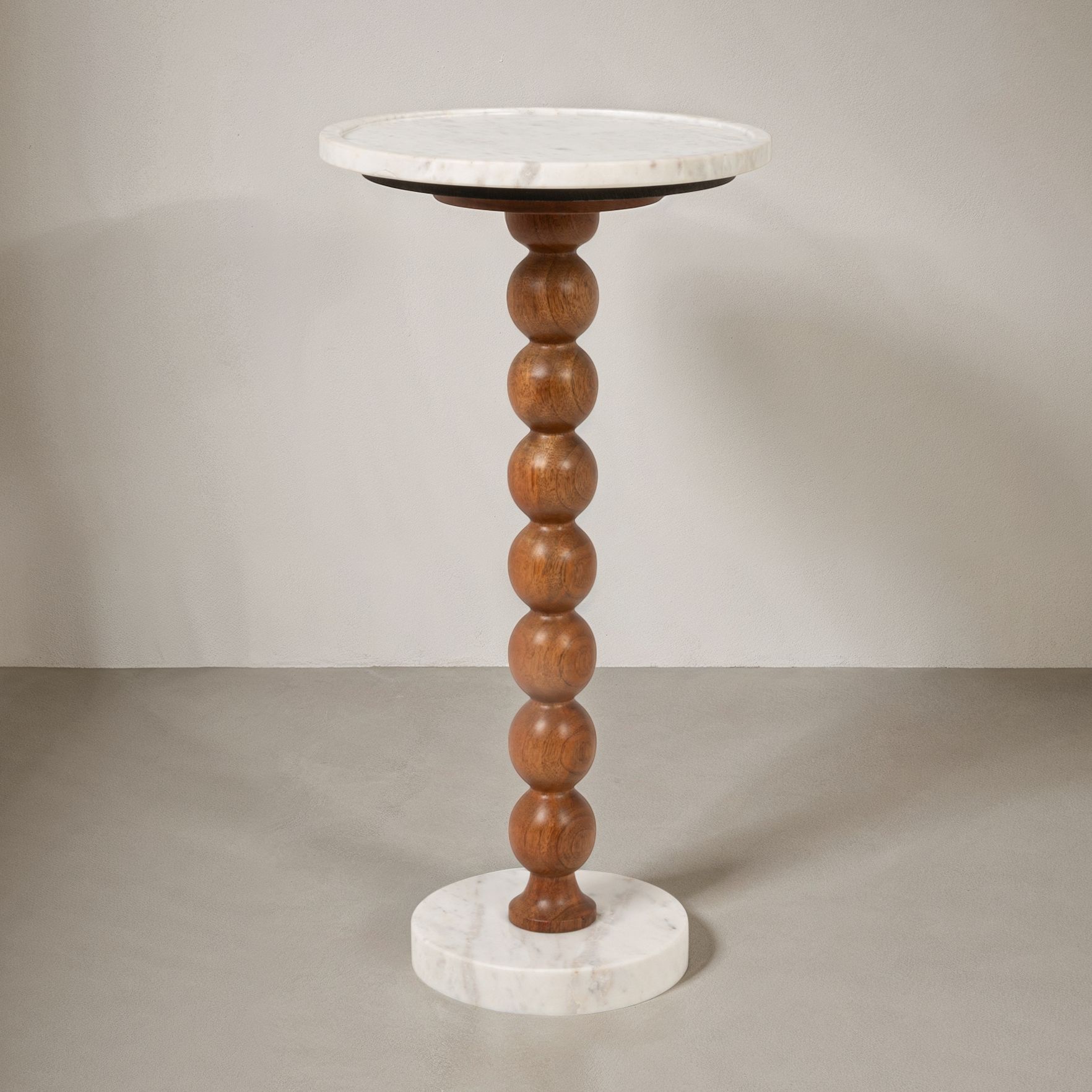 Mango Wood Bead Ball and Marble Drink Table, Honey Walnut and White