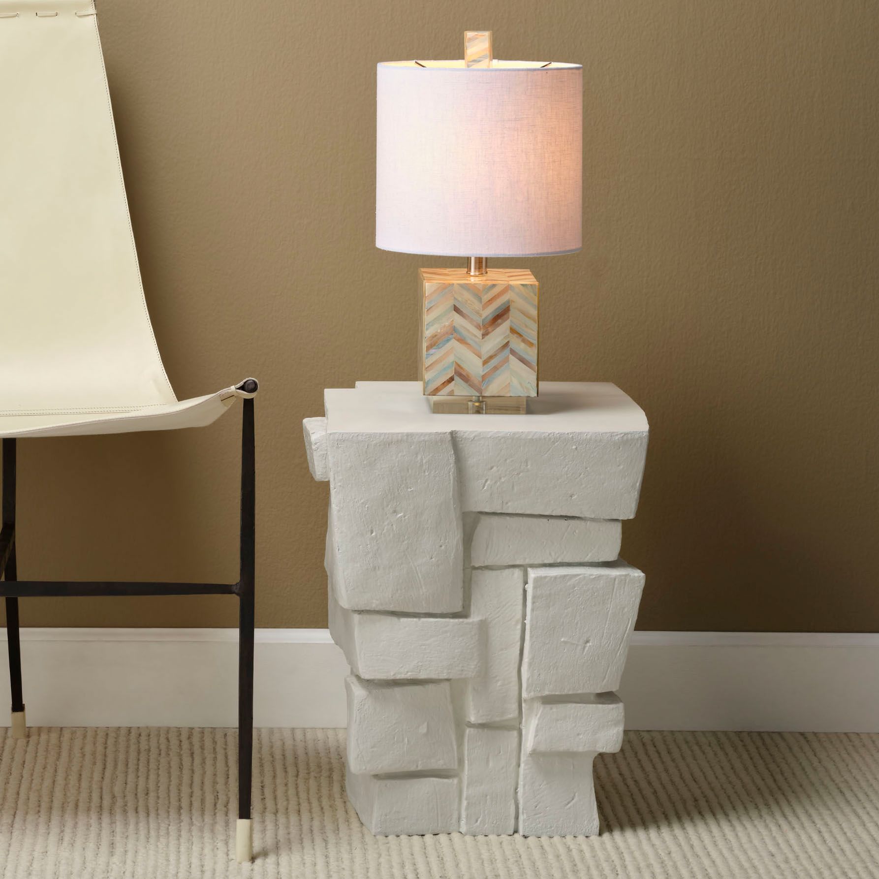 Jamie Young Brick Fiber Glass Indoor/Outdoor Cream White Side Table