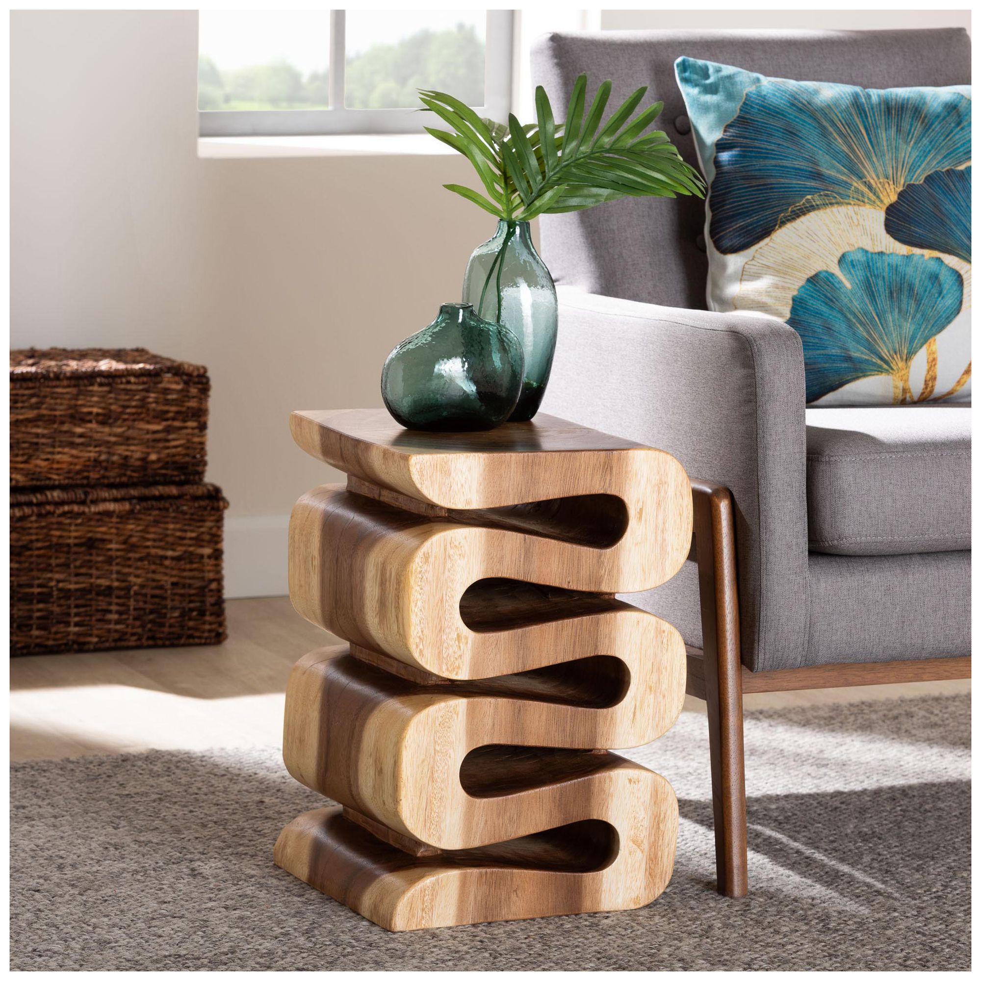 bali & pari Eliada Hand-carved Suar Wood Side Table