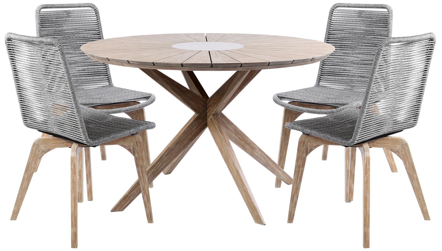 Sachi and Island 5 Piece Outdoor Dining Set in Light Eucalyptus, Concrete