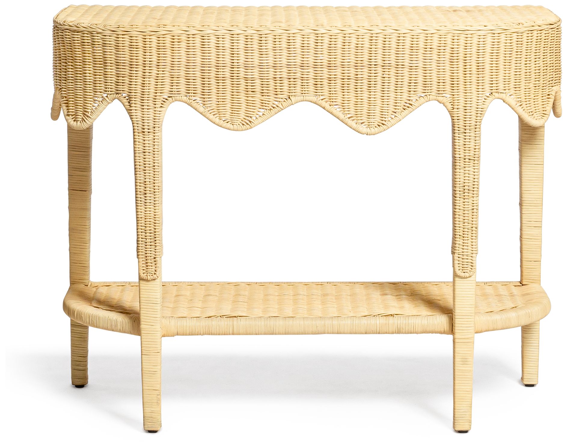 TOV Suzie 45" Wide Navy Wood Woven Rattan Console Table