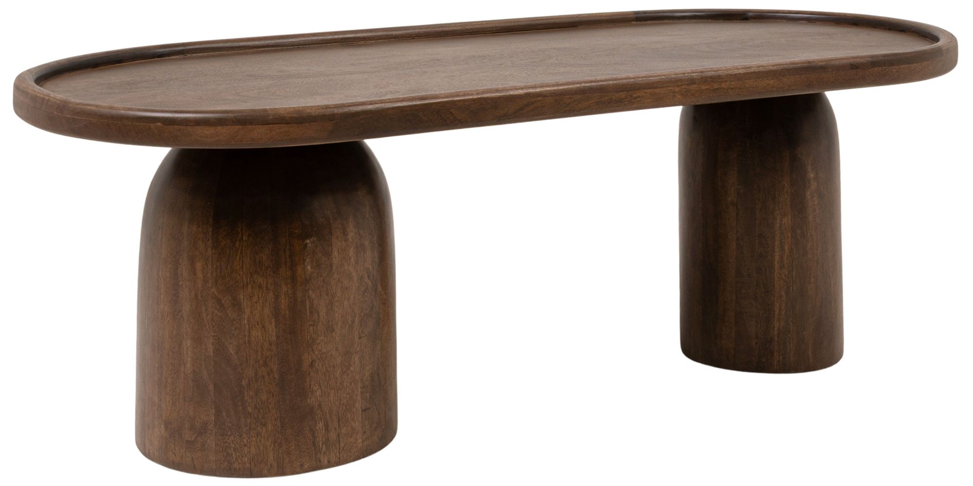 Asymmetrical Oval Mango Wood Coffee Table with Raised Tray Edge
