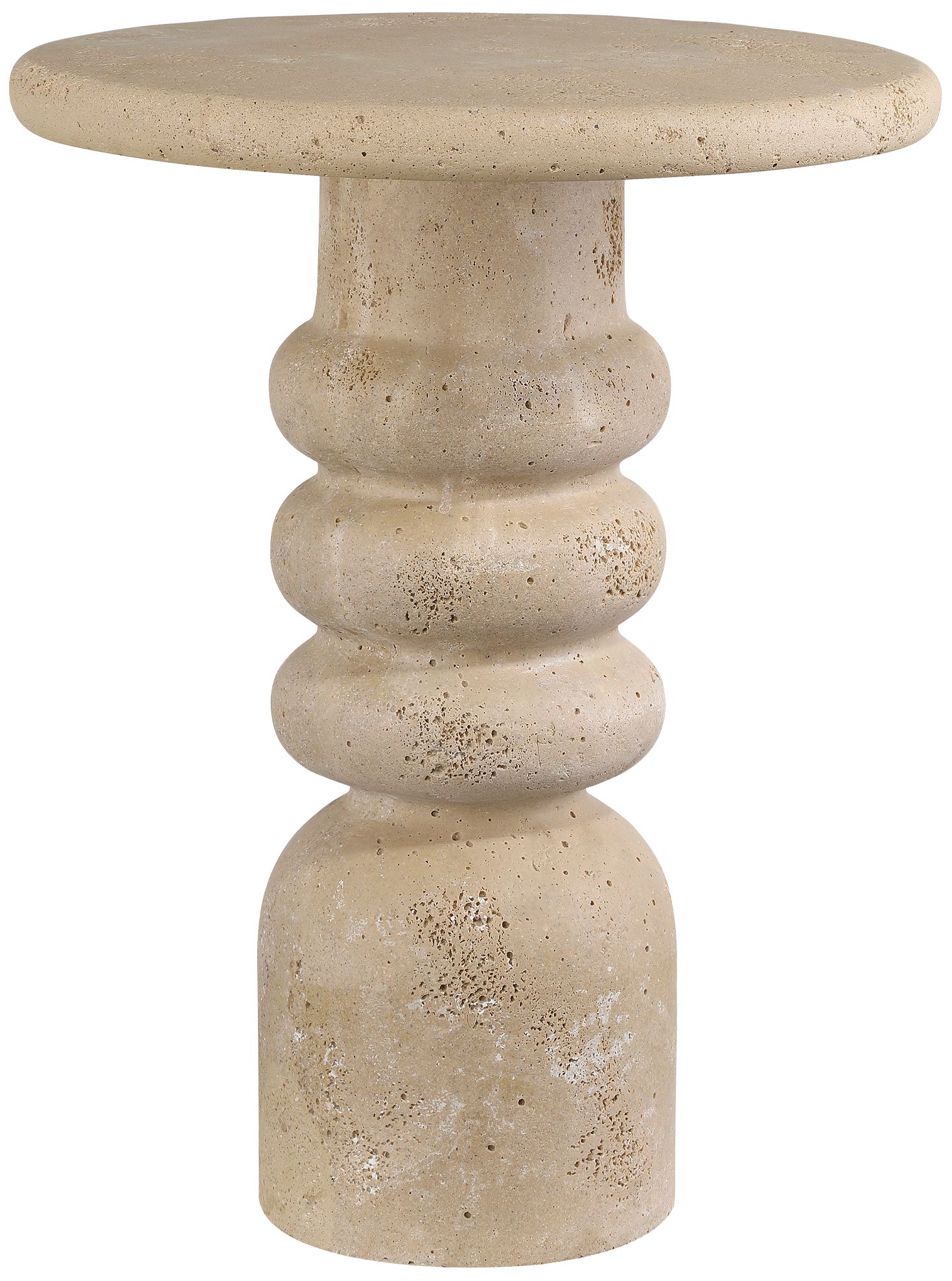 Round Marble and Mango Wood Semi-Enclosed Side Table in Natural Finish