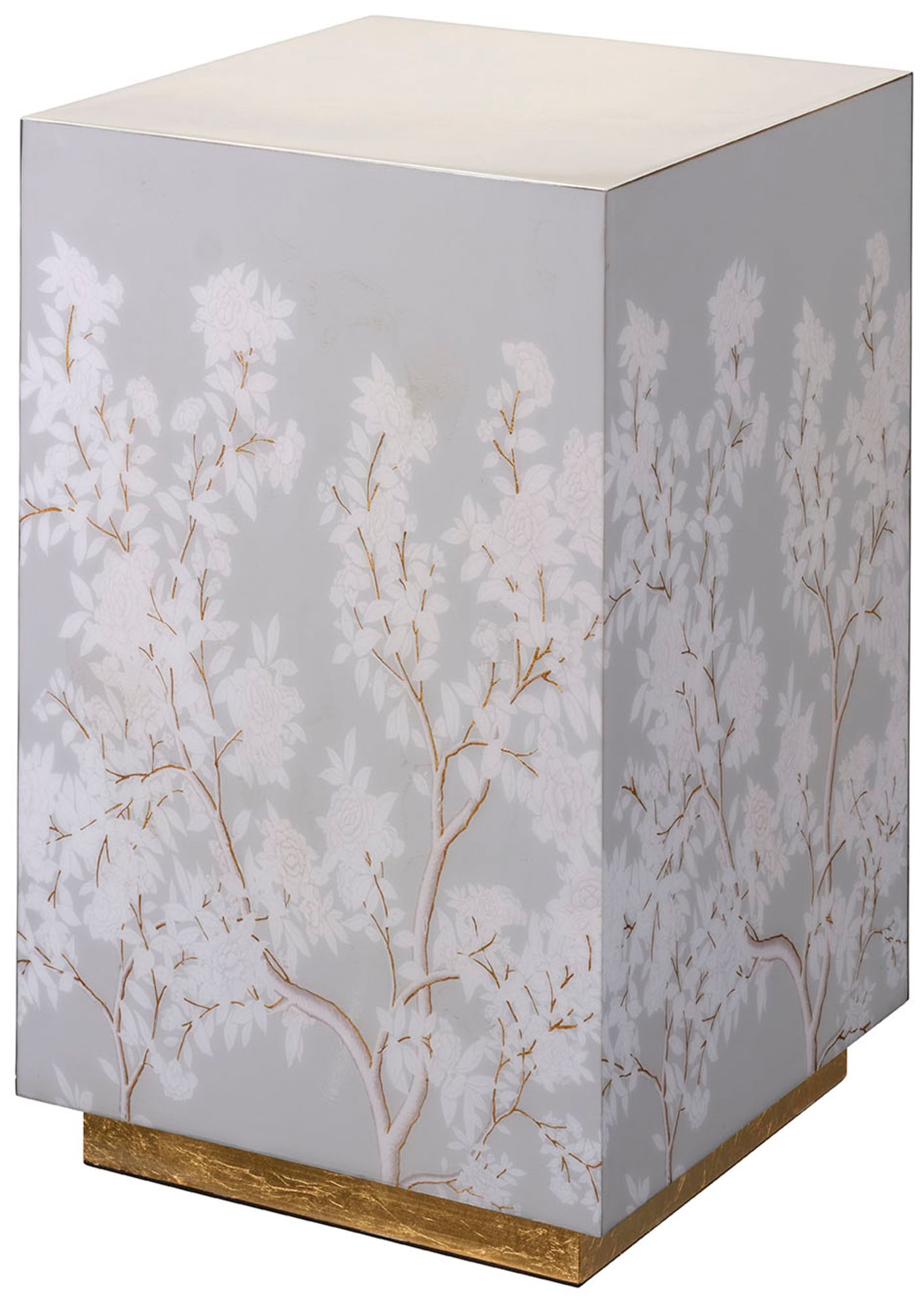 Silver Glass Glam Pedestal Table, 12" x 12" x 28"