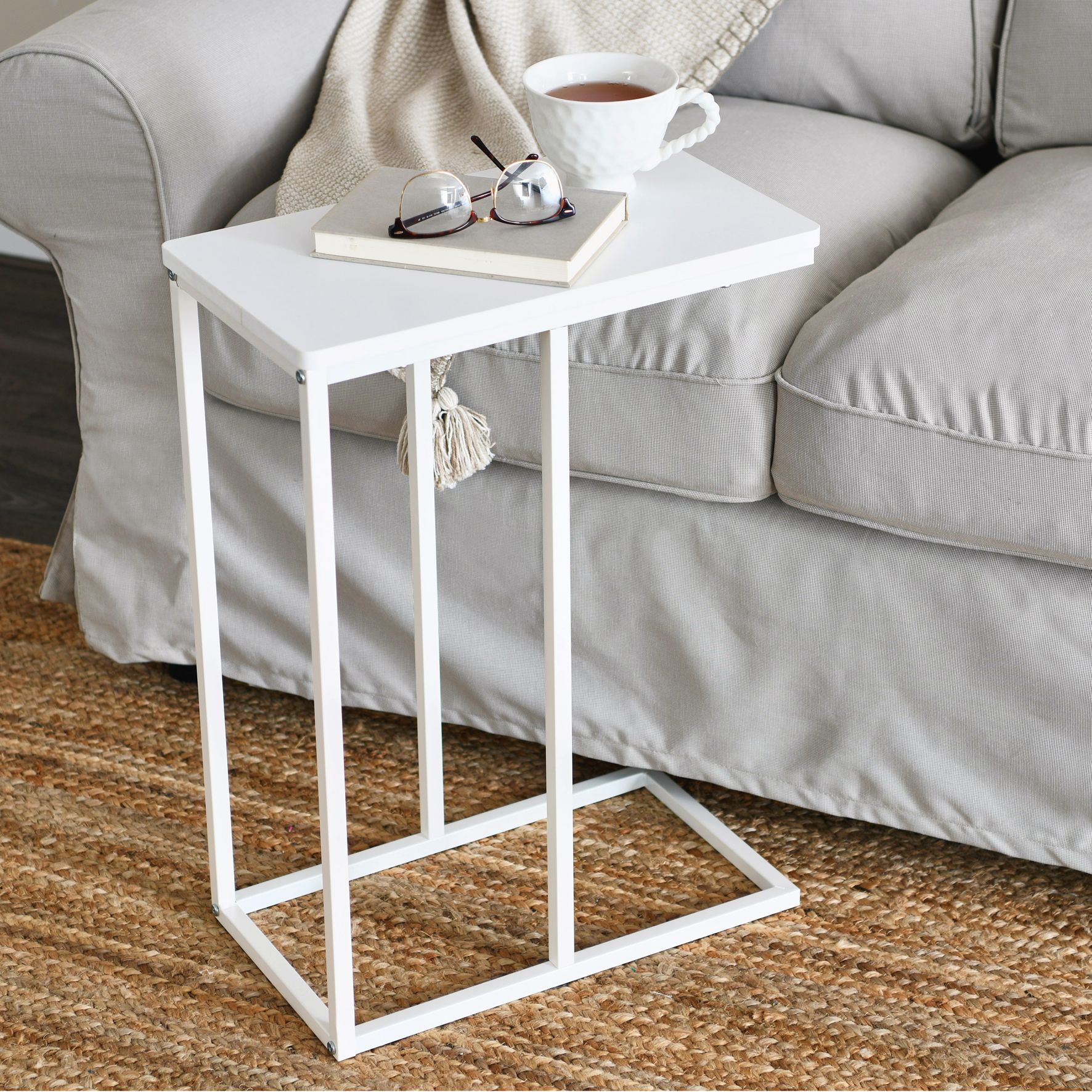 Jamestown C-Shaped Side End Table Scandinavian White and White Metal