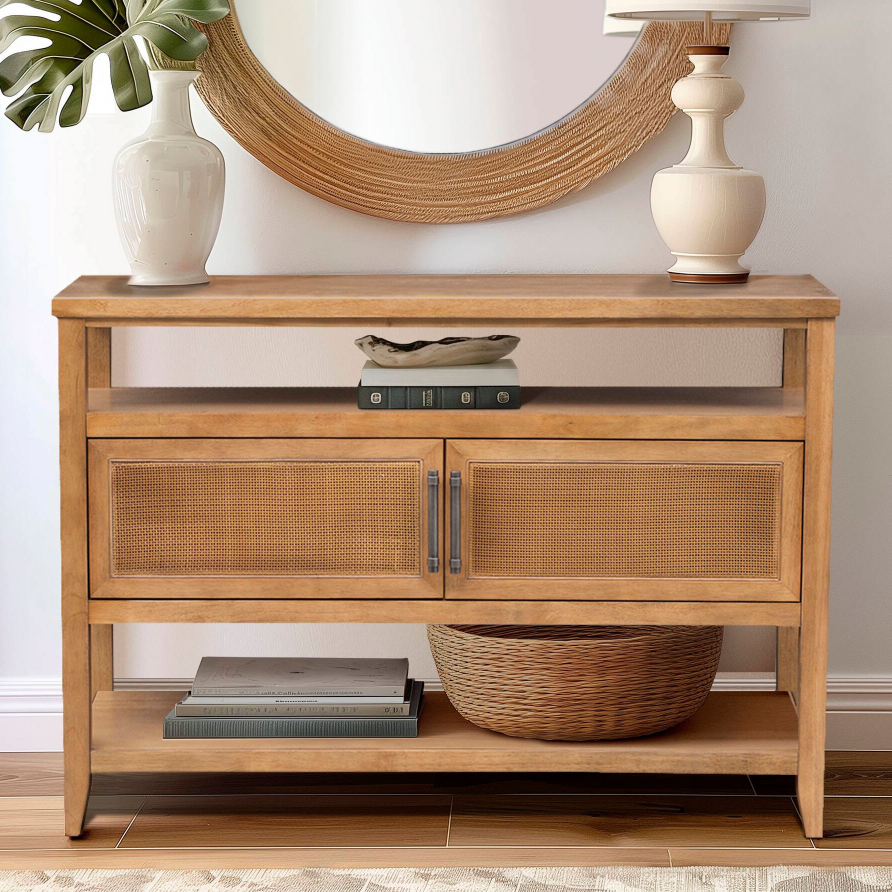 Ramona 39 1/4" Wide Light Honey Rattan Console Table