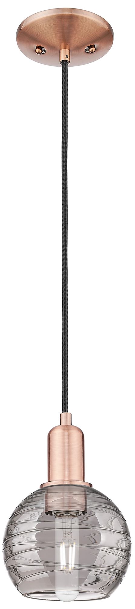 Athens Deco Swirl 6"W Copper Cord Mini Pendant With Light Smoke Shade