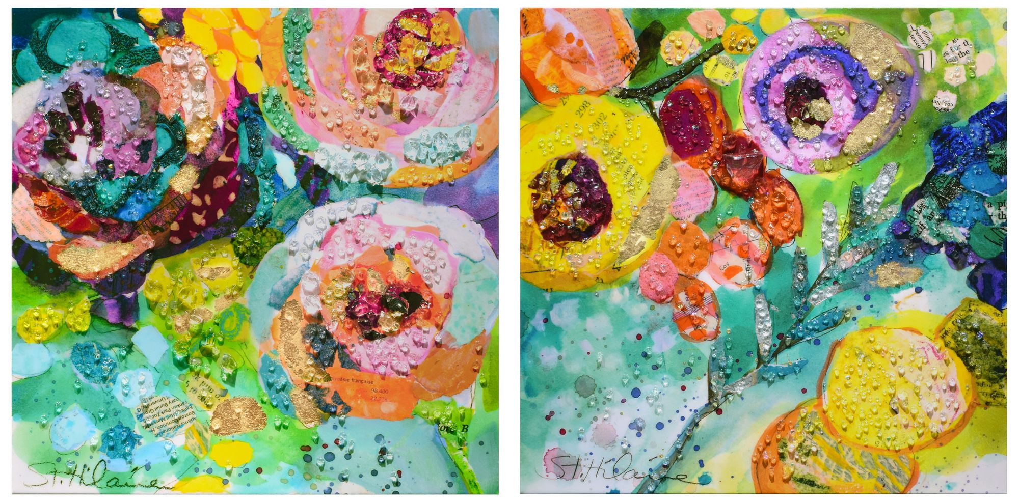 Floral Radiance I & II Crystallus Epoxy Coated Wrapped Canvas Wall Art