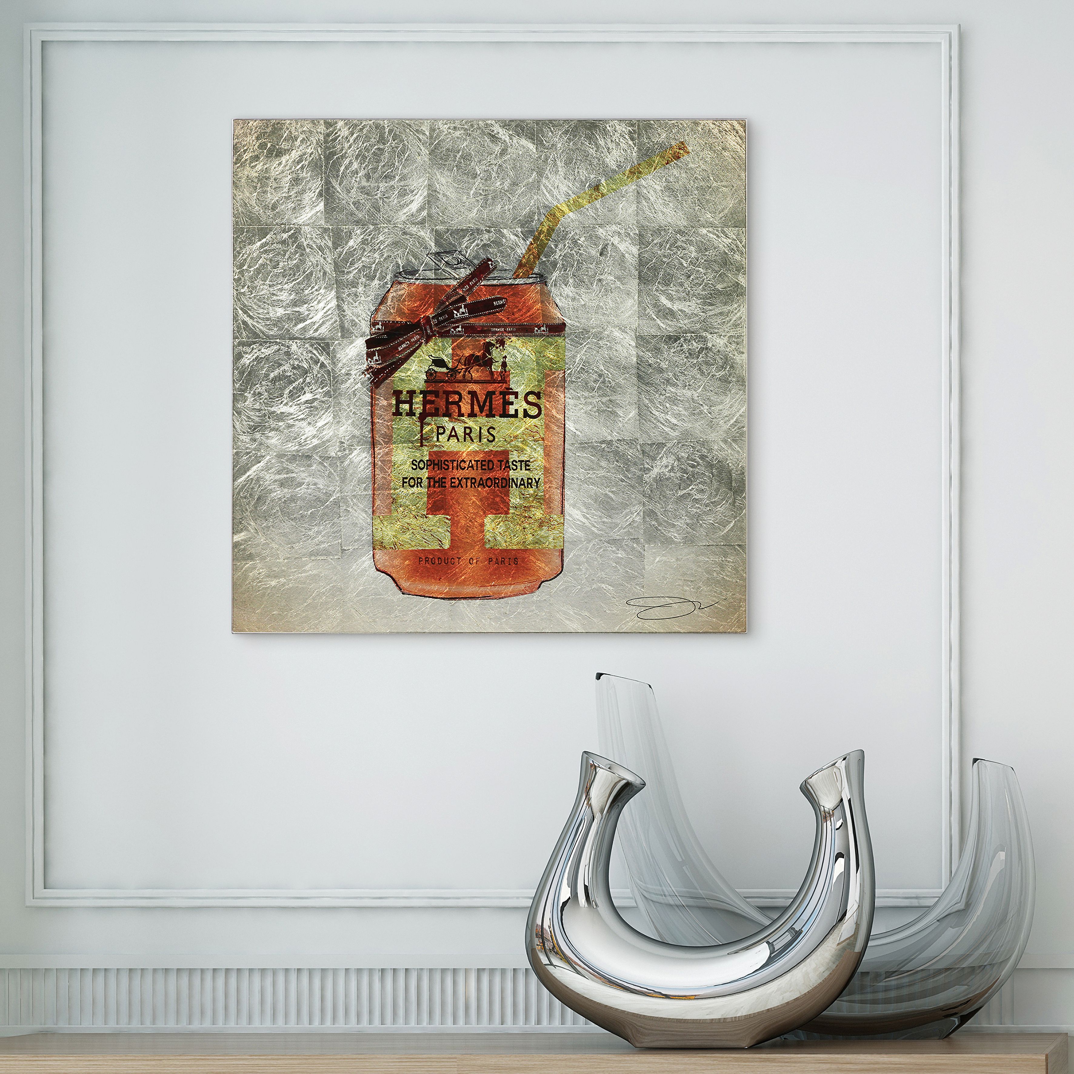 Sip Designer Reverse Printed Tempered Glass with Silver Leaf Wall Art