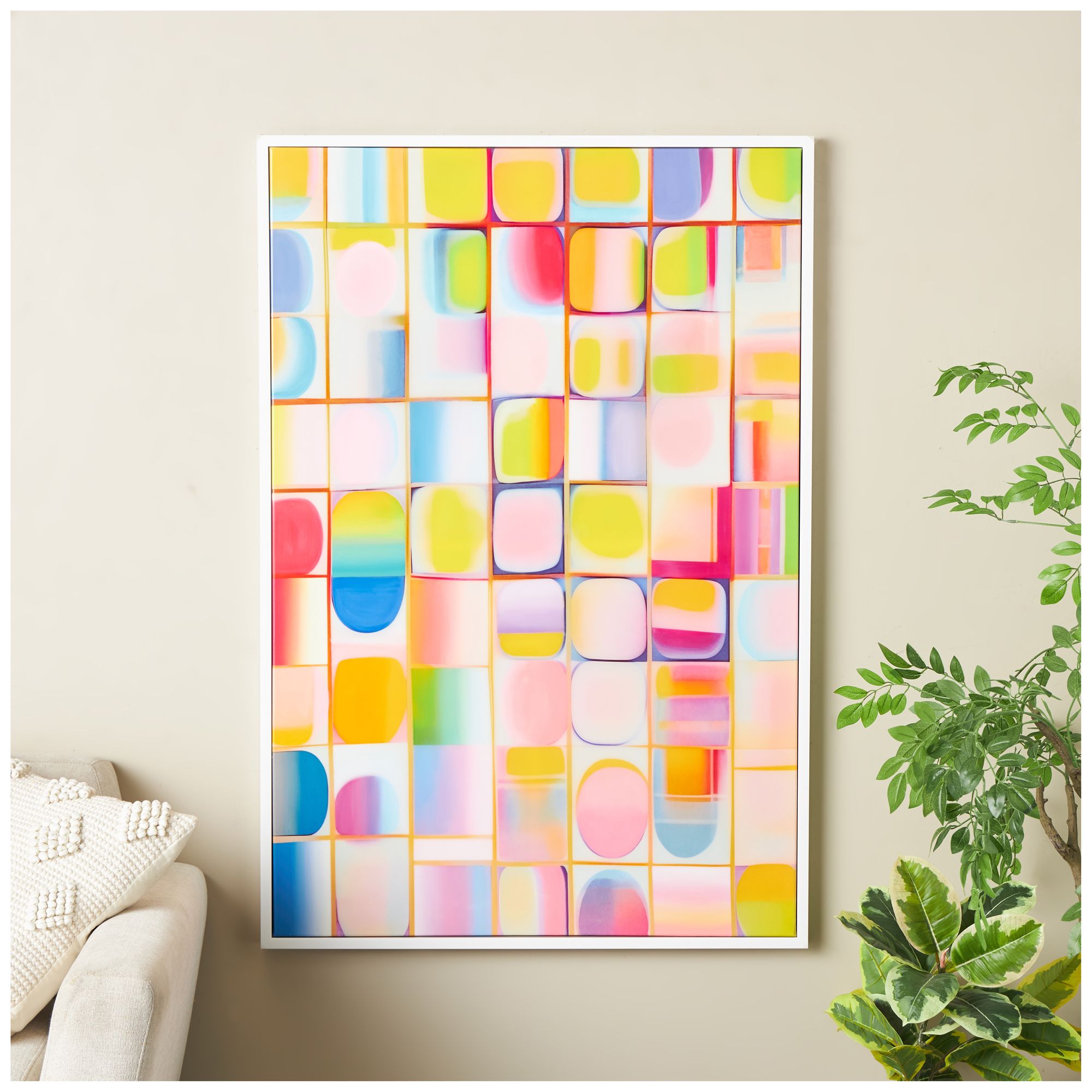 Multi Colored Canvas Contemporary Framed Wall Art, 33" x 2" x 49"