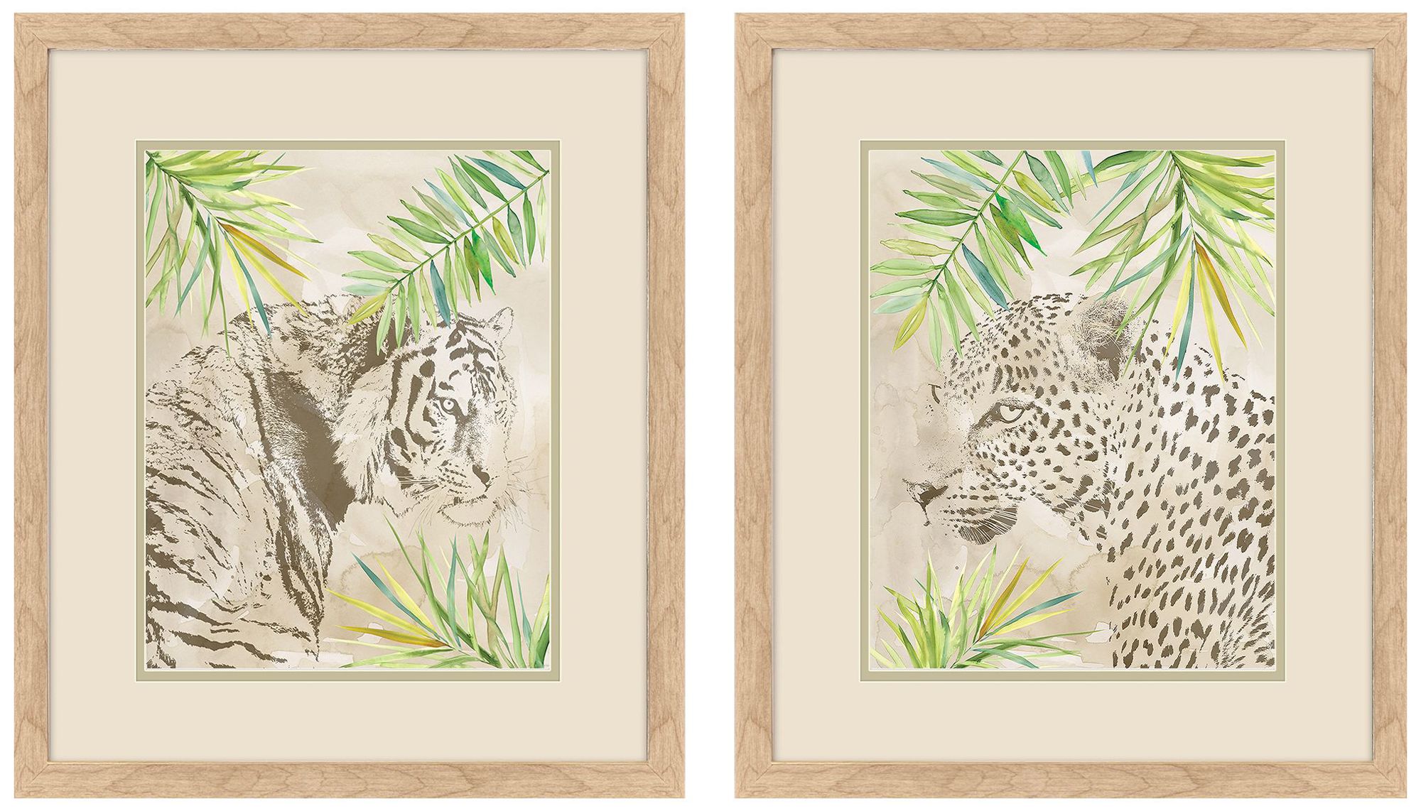 Boho Jungle Cat 18"W x 21"H Framed Art Set of 2