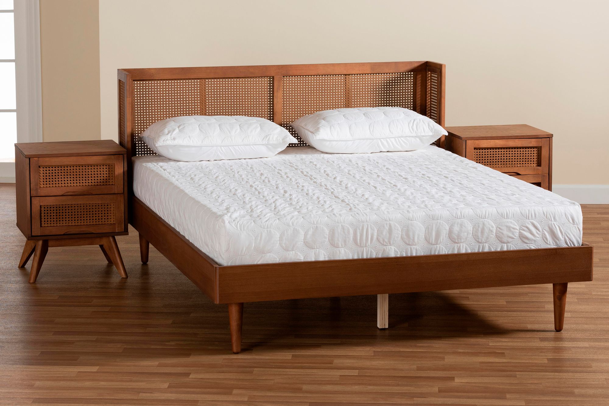 Rina Ash Walnut Wood 3-Piece King Size Bedroom Set