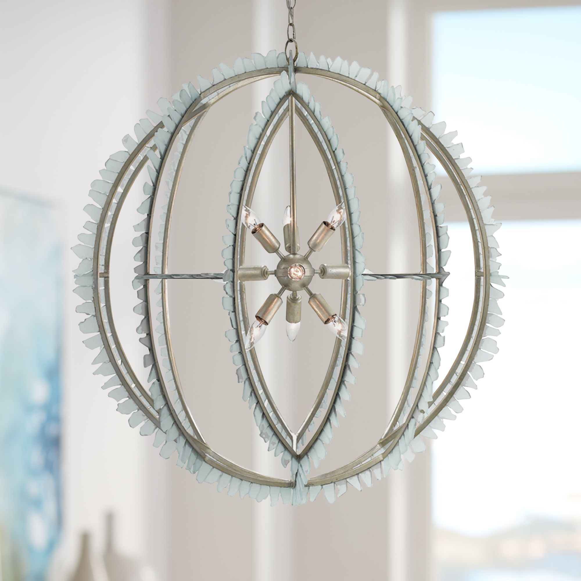 Currey & Company Saltwater 34" Silver Leaf Seaglass Orb Chandelier
