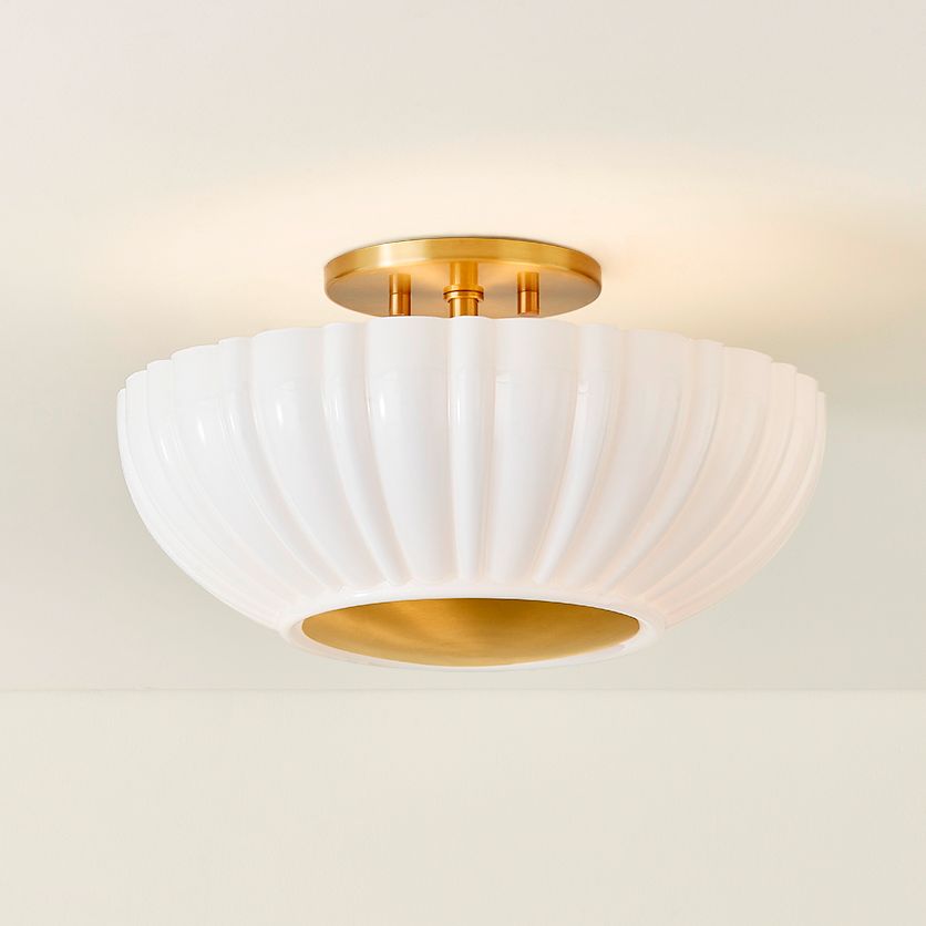 Mitzi Penelope 14"W Aged Brass and Satin White Ceiling Light