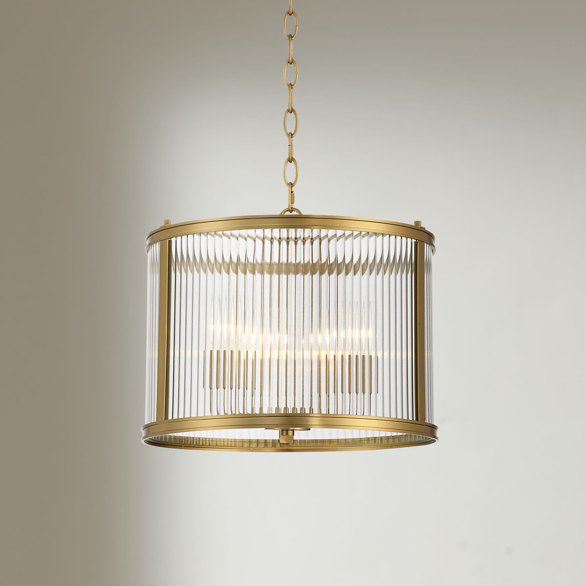 Possini Euro Soresi 20"W Satin Brass and Piastra Glass 6-Light Pendant