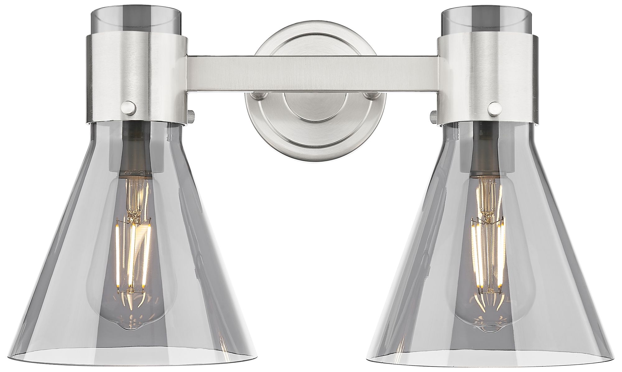 Downtown Lawton Cone 16"W Satin Nickel Vanity Light w/ Light Smoke Shade