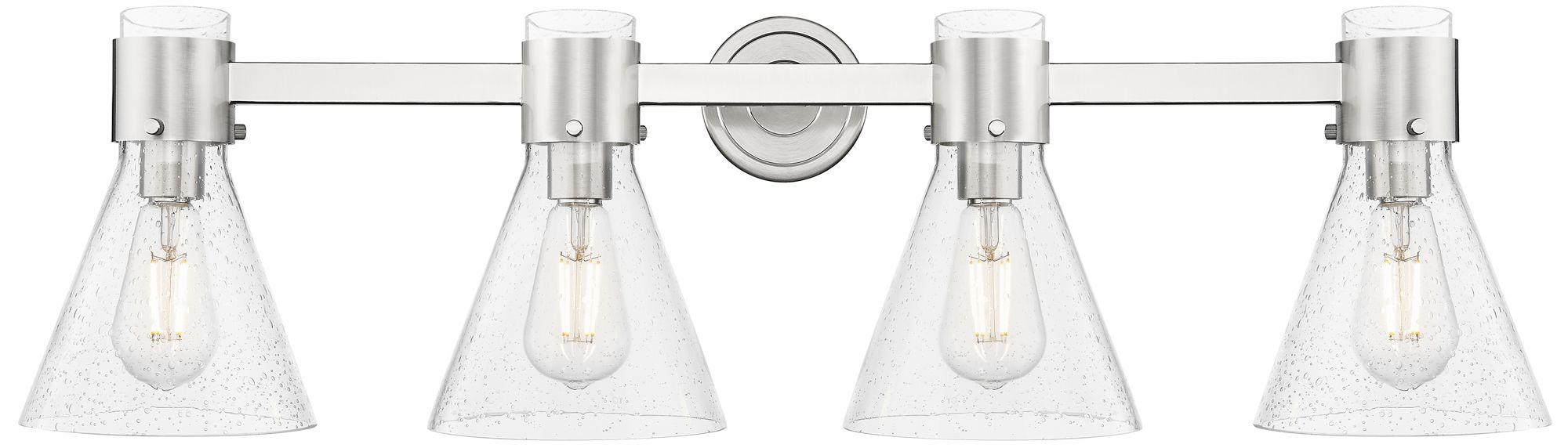 Downtown Lawton Cone 34"W Satin Nickel Vanity Light w/ Seedy Shade