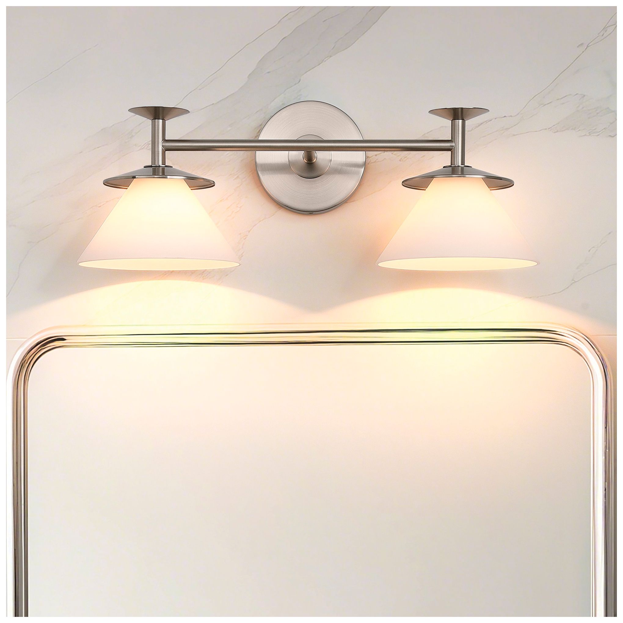 Downtown Owego 17"W 2 Light Nickel Vanity Light w/ Mercury Shade