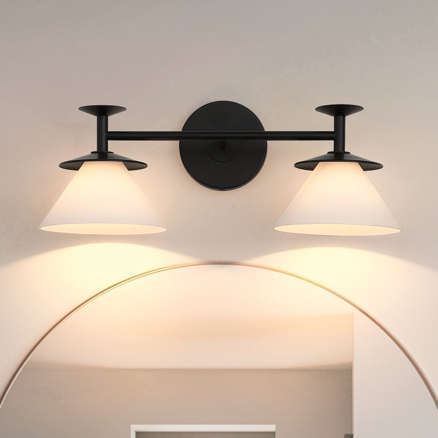 Brooklyn 1-Light Double Shade Sconce - Black - Black - Opal Glass