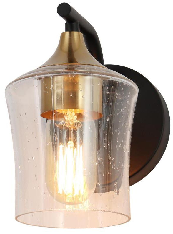 1-Light Brass Gold Seeded Glass Wall Sconce
