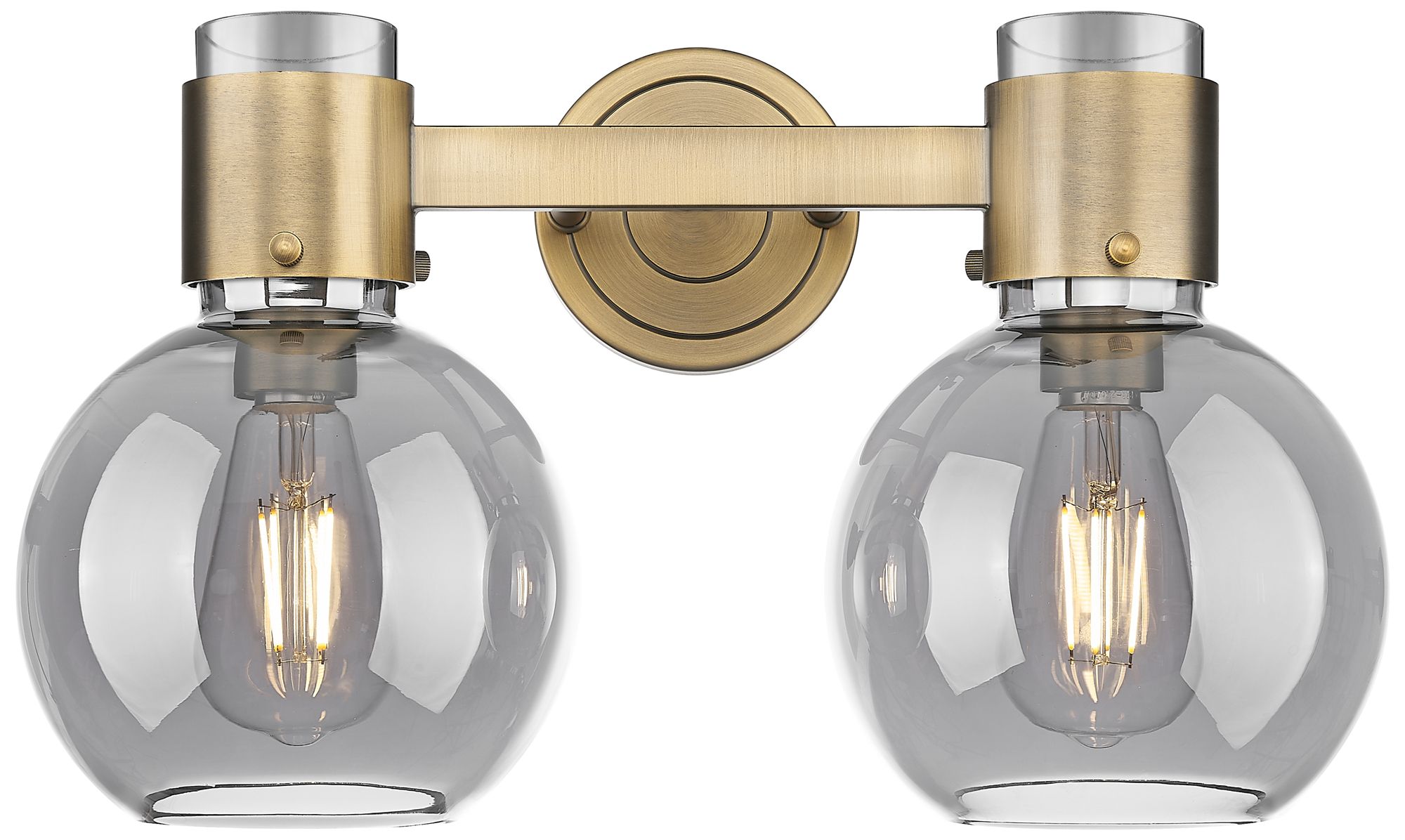Downtown Lawton Sphere 16"W Brass Vanity Light w/ Light Smoke Shade