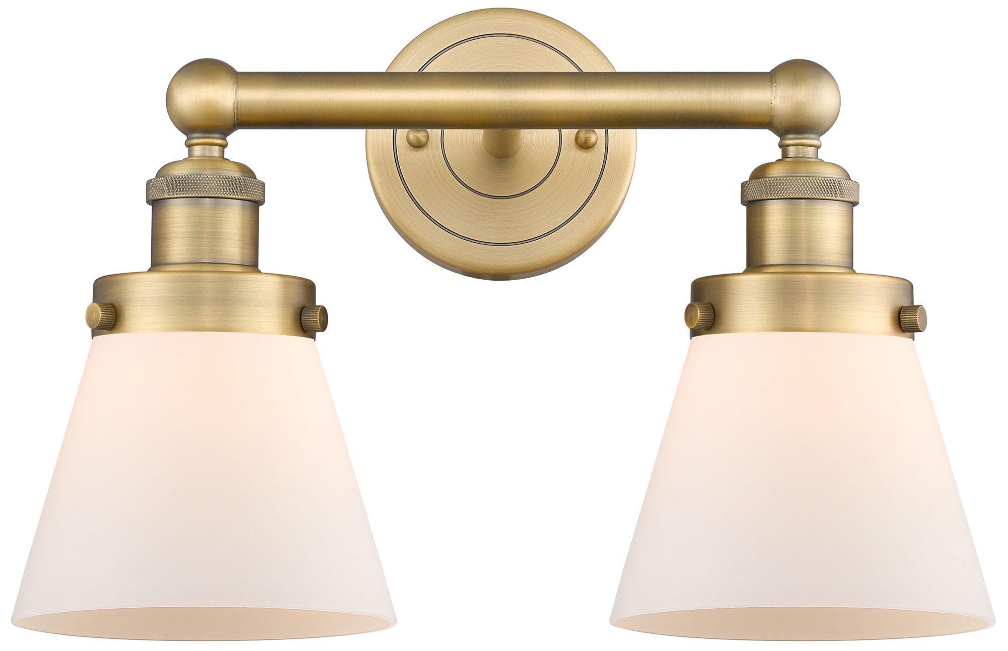 Edison Small Cone 15.5"W 2 Light Brushed Brass Bath Light With White S