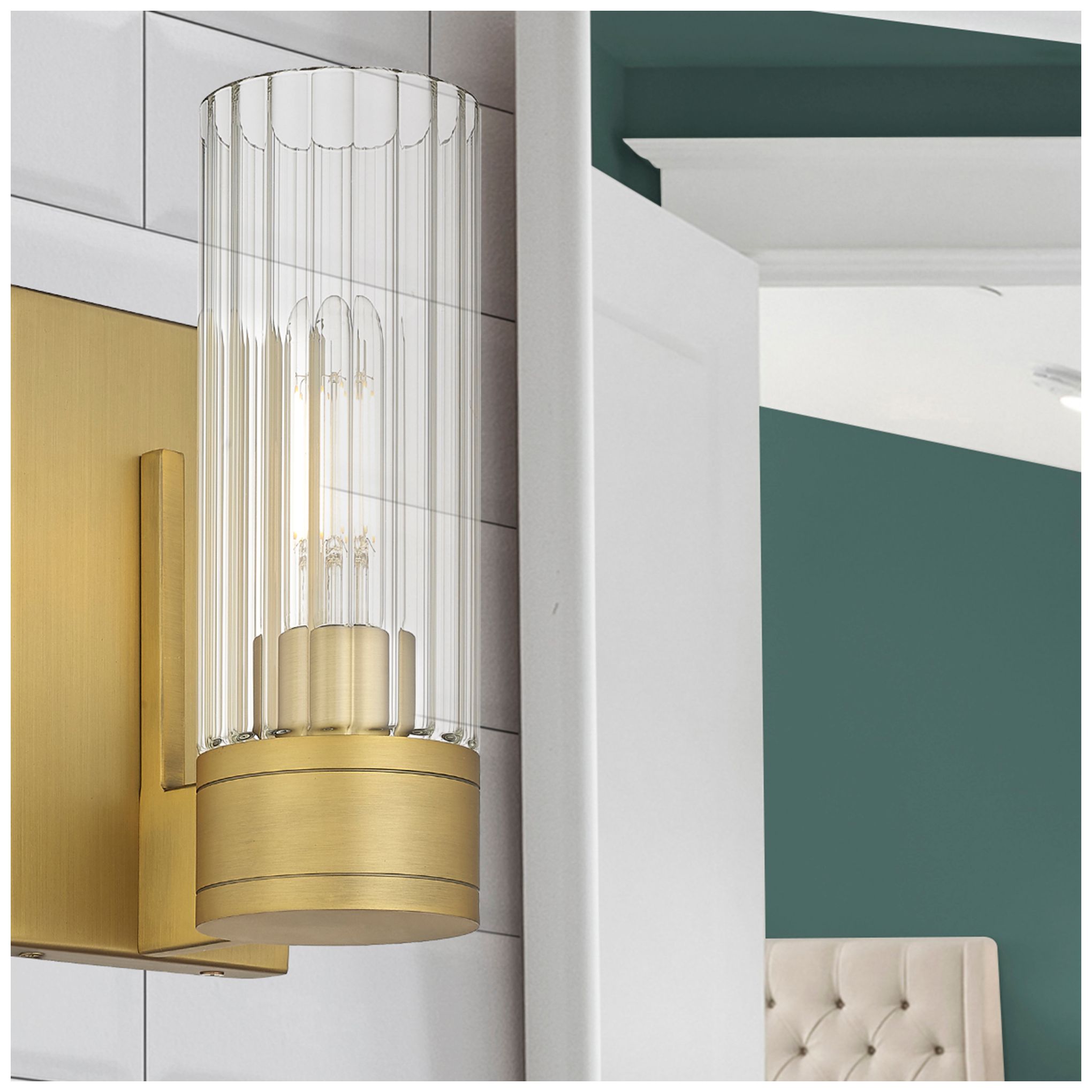 Kichler Crosby 9 1/4" High Brass and Clear Glass Cylinder Wall Sconce