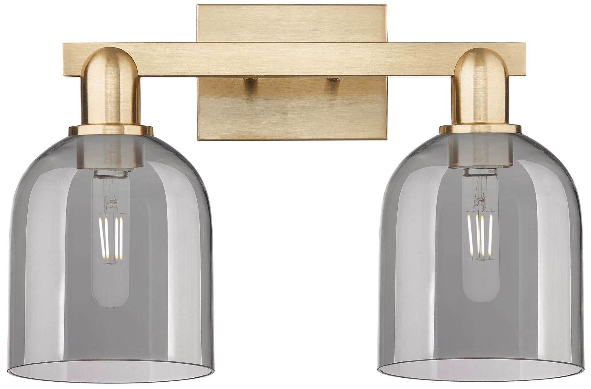 Arcadia Bella 17"W 2 Light Bronze Vanity Light w/ Light Smoke Shade