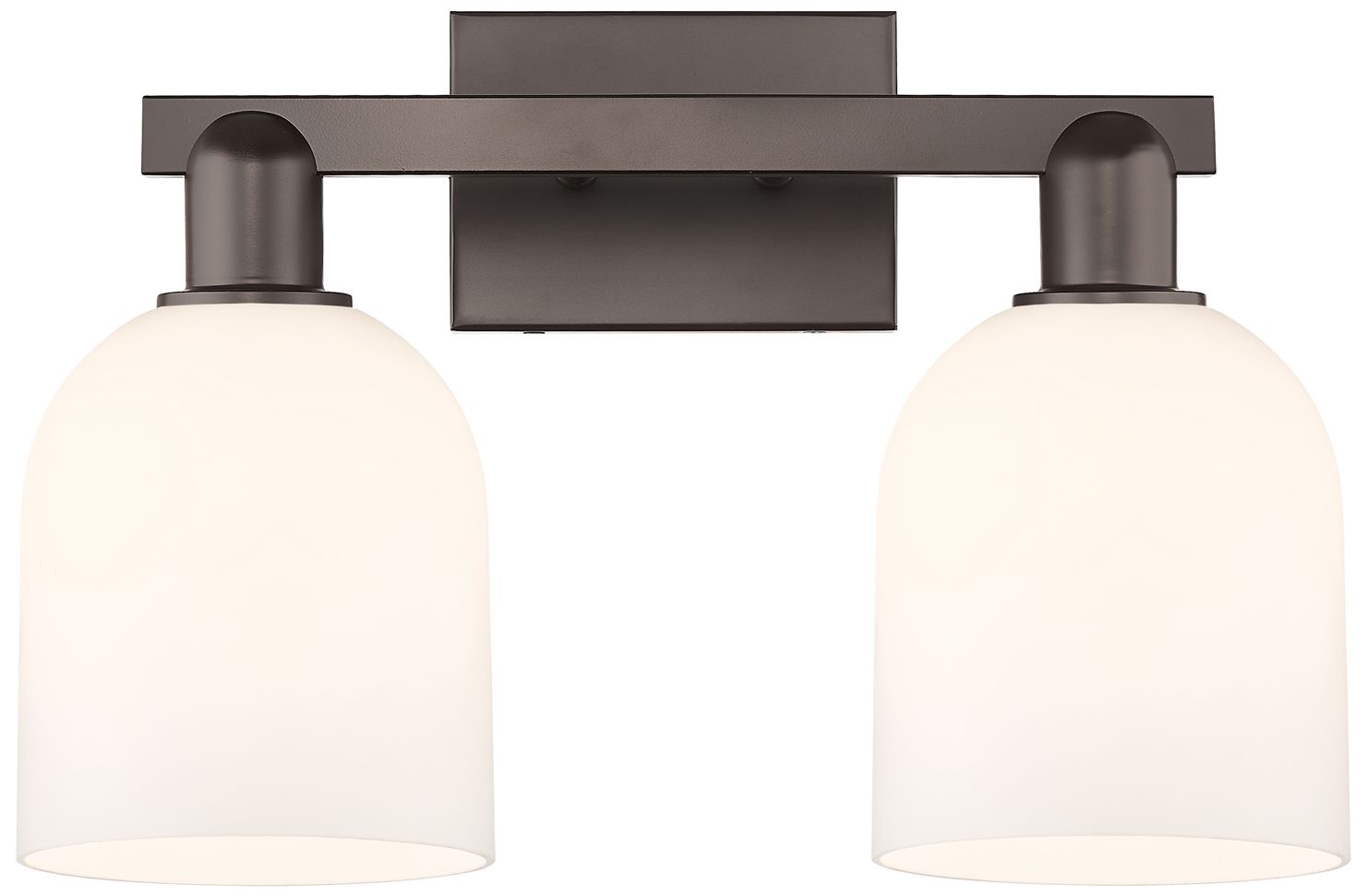 Arcadia Bella 17"W 2 Light Oiled Bronze Vanity Light w/ White Shade
