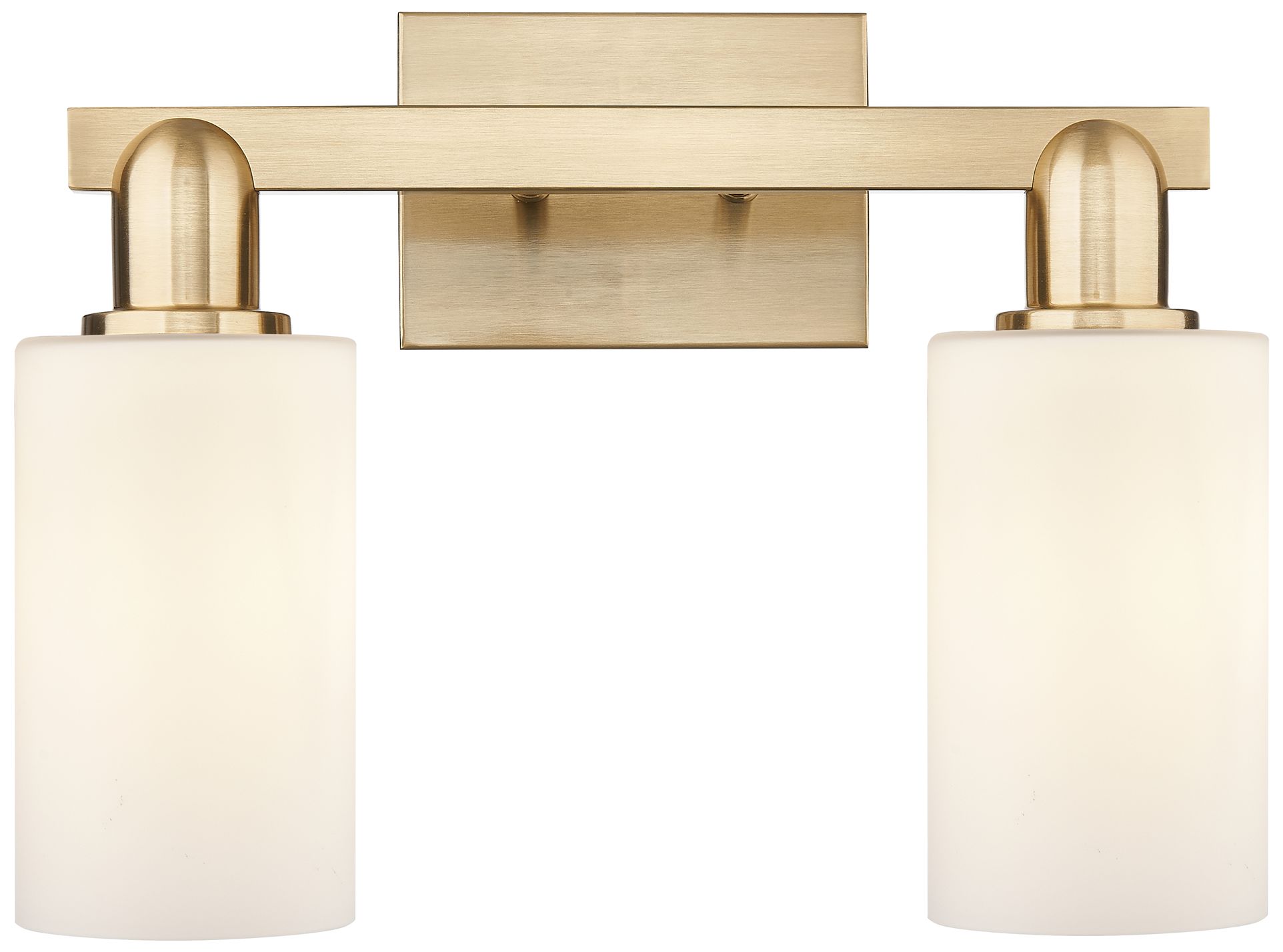 Arcadia Clymer 15"W 2 Light Bronze Vanity Light w/ Matte White Shade