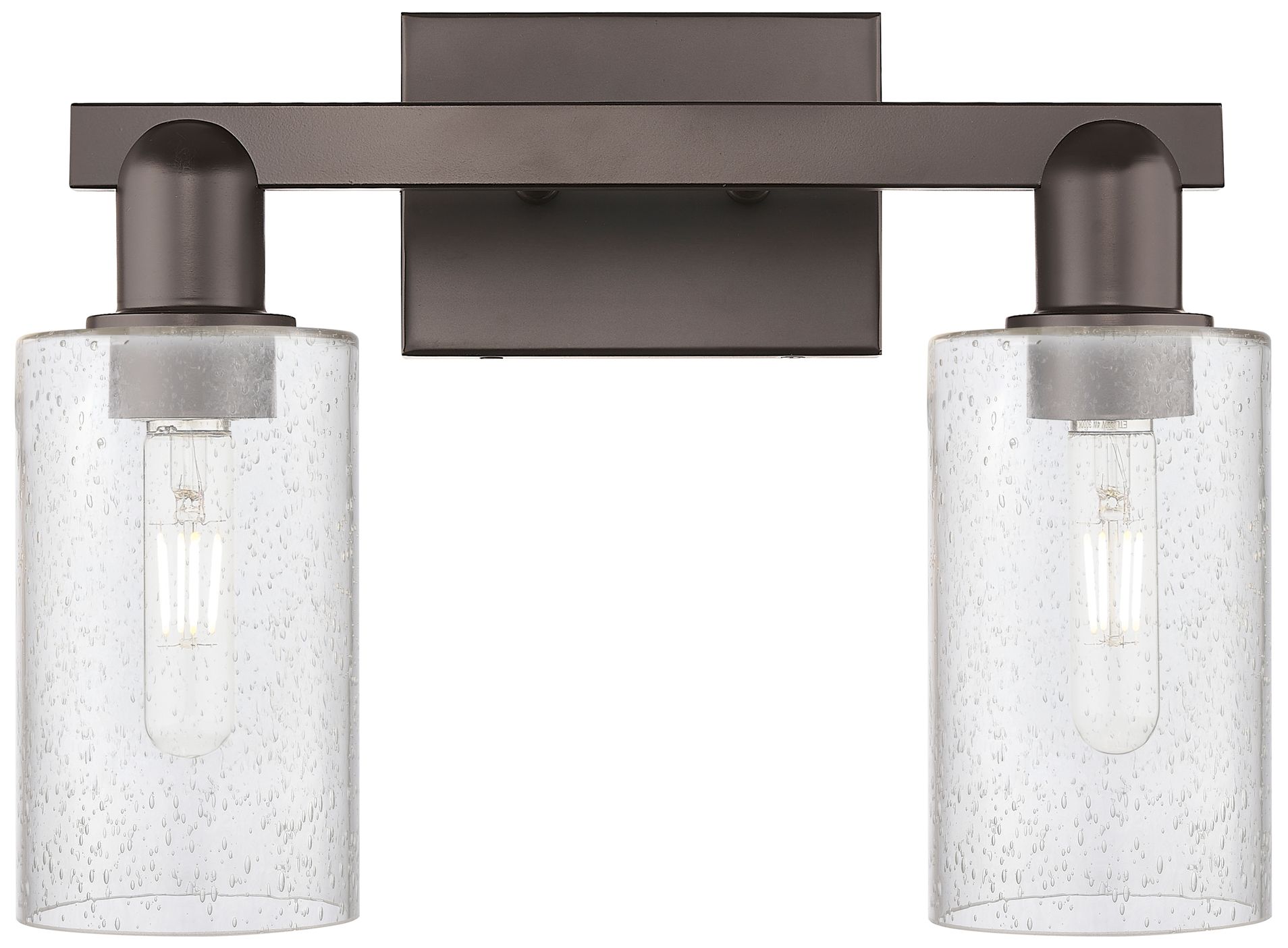 Arcadia Clymer 15"W 2 Light Oiled Bronze Vanity Light w/ Seedy Shade