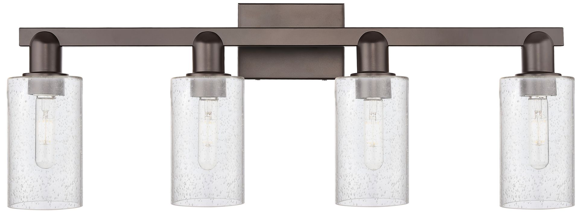 Arcadia Clymer 31"W 4 Light Oiled Bronze Vanity Light w/ Seedy Shade