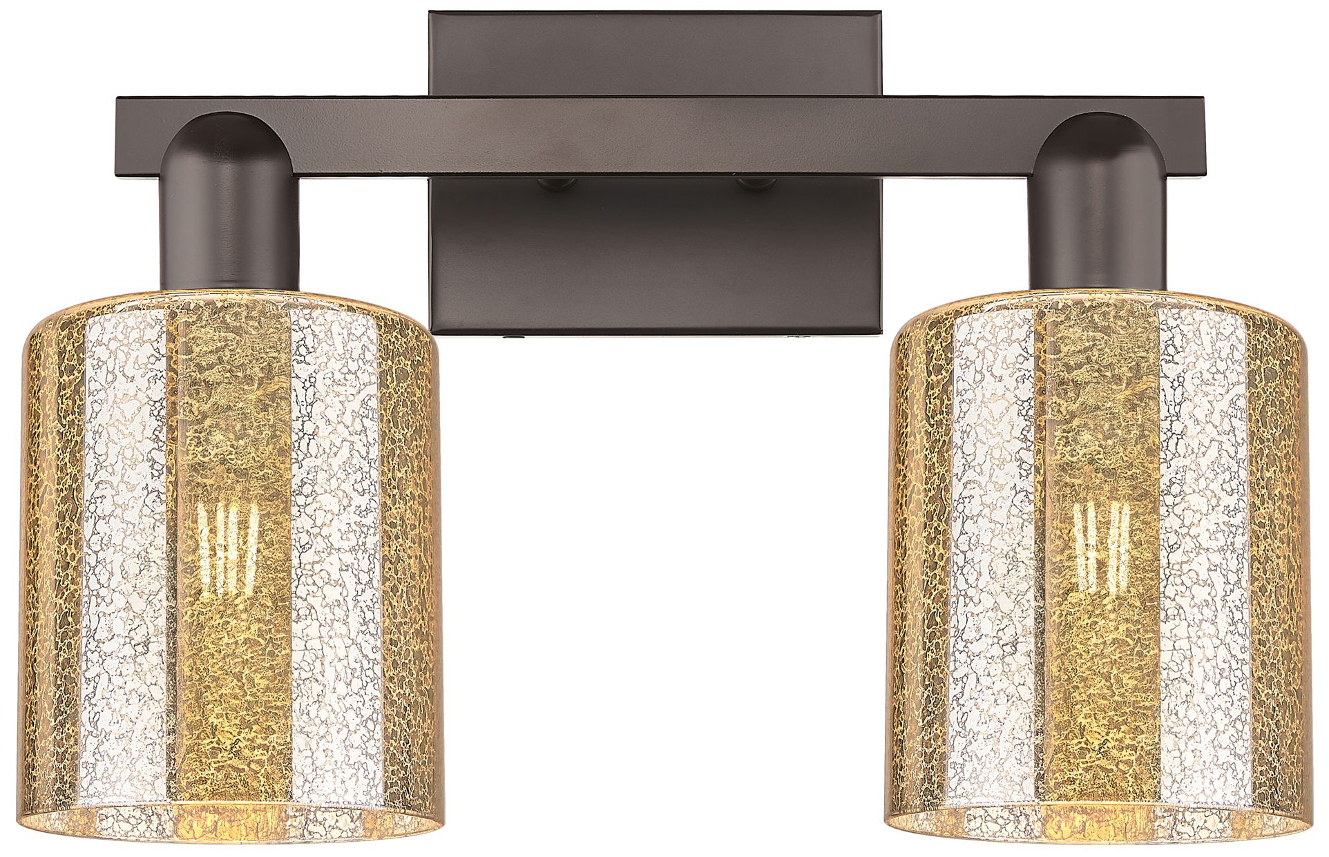 Arcadia Cobbleskill 16"W 2 Light Bronze Vanity Light w/ Mercury Shade