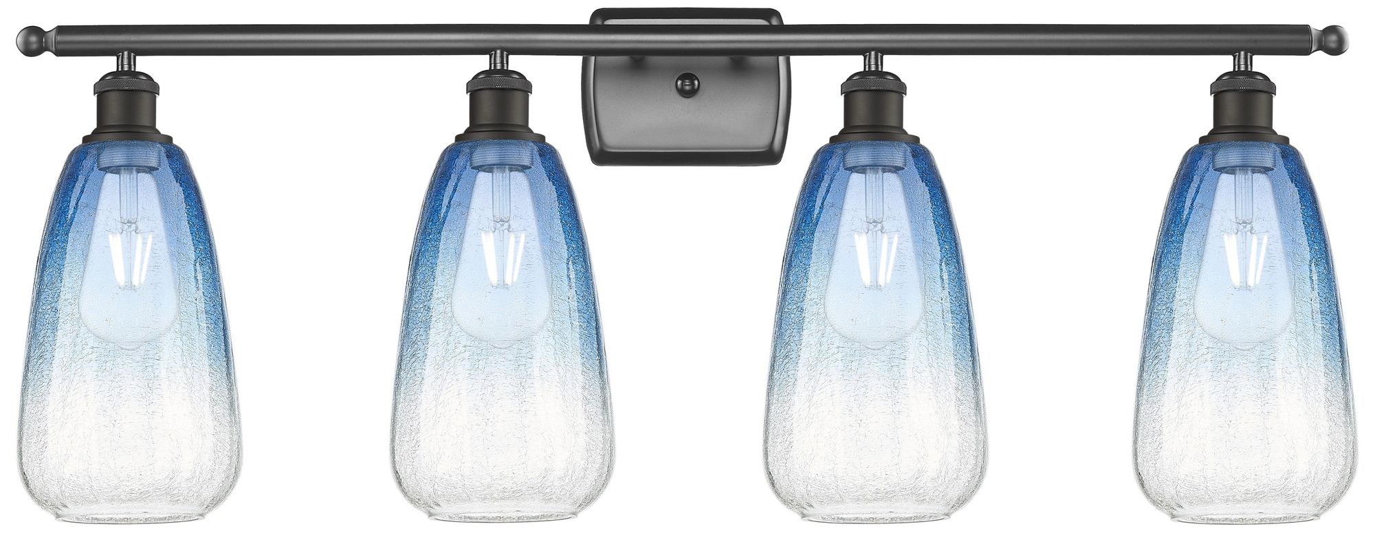 Ballston Brookhaven Almond 36"W 4-Lt Oiled Bronze Vanity w/ Sapphire Shade